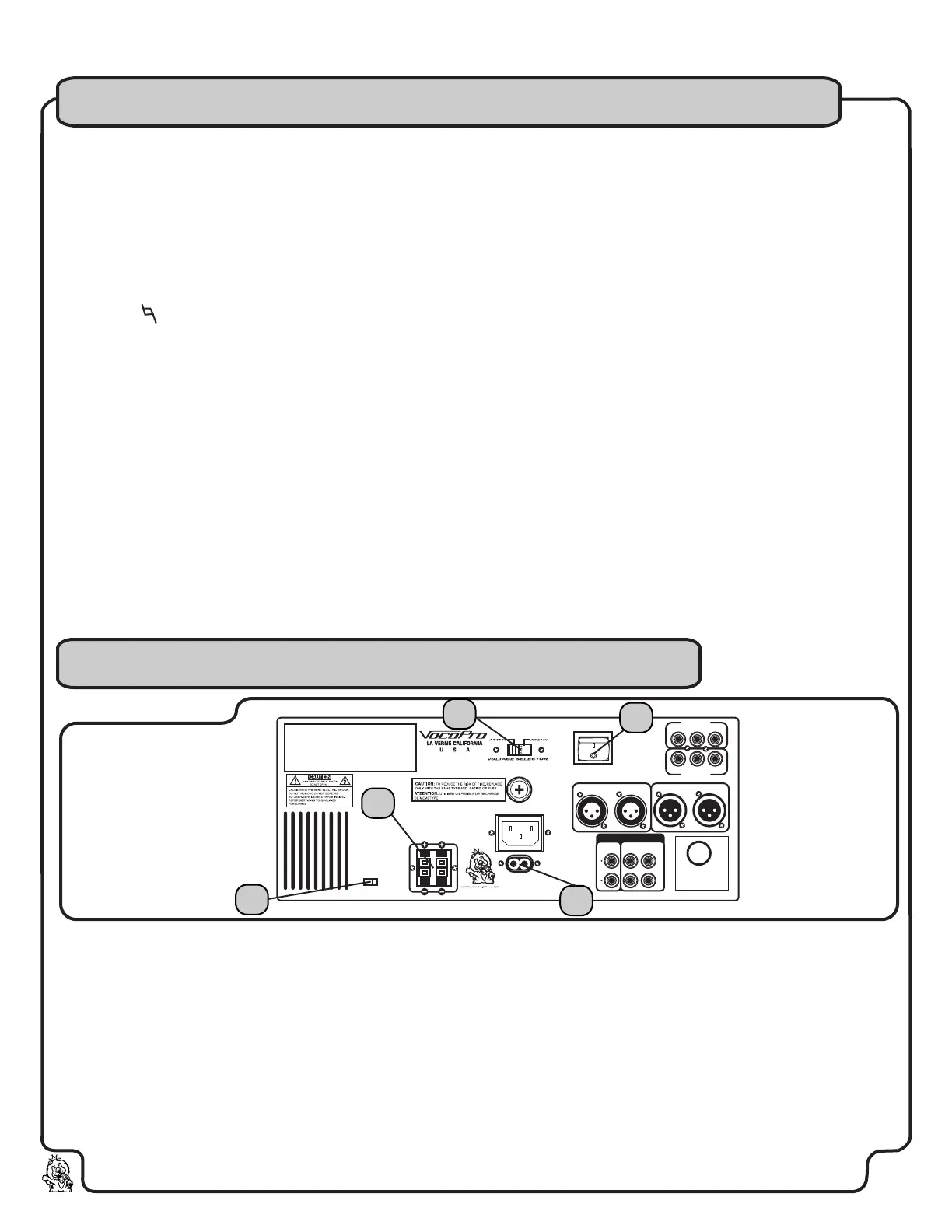 35. MIC INPUTS 1, 2 - These inputs are for connecting MICROPHONES with a ¼" plug. NOT E : B oth the X LR (rear panel) and ¼" inputs cannot be used