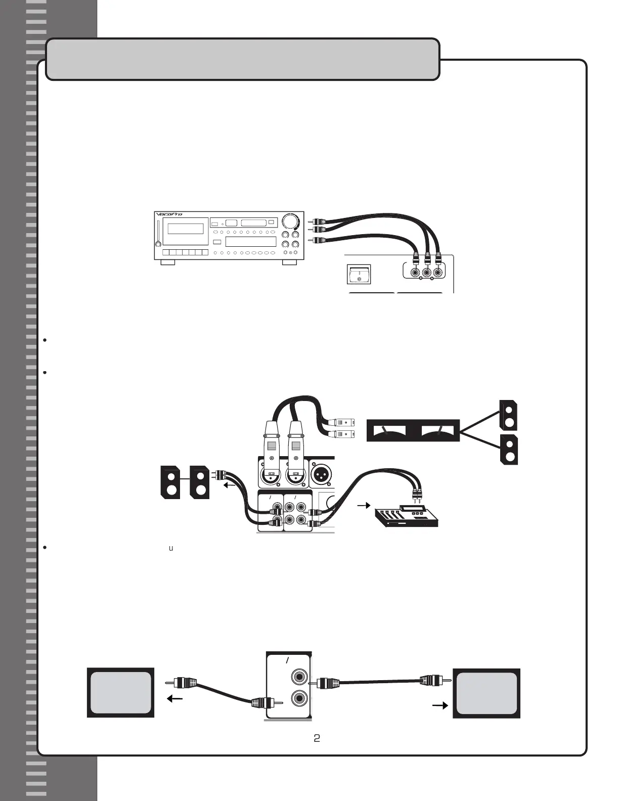 To connect VIDEO, using an RCA-type patch cable, connect the Video In jack of your television or monitor device to either the Video Out 1 or 2
