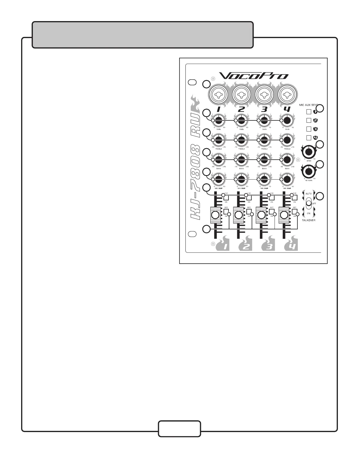 8. MIC DSP control - Controls the amount of DSP effect (Reverb and echo) that is applied to each microphone