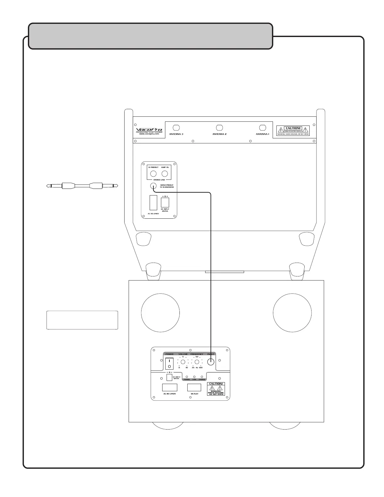 Using a mono ¼” to ¼” audio cable, connect one end to the MONO PREOUT TO SUBWOOFER jack
