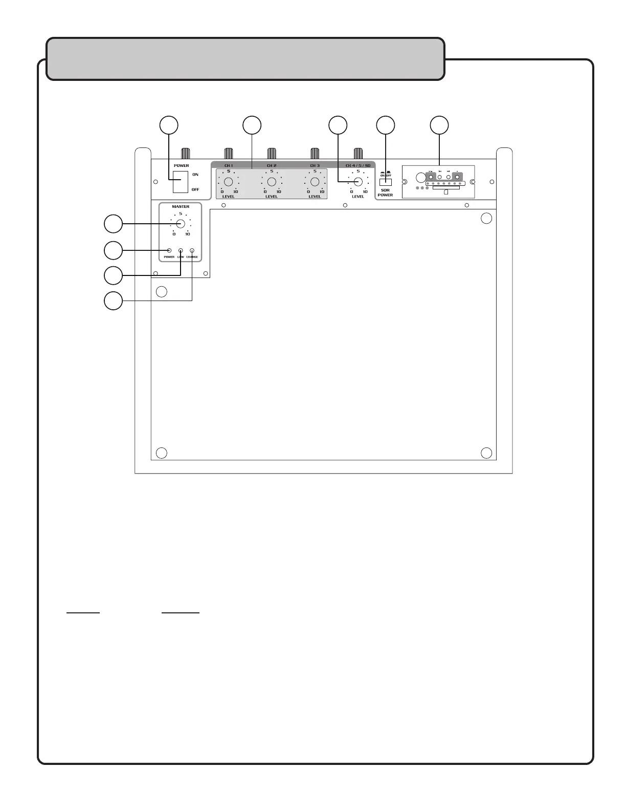 6. CH 1-3 VOLUME knobs – Use these knobs to control the volume level for CH 1-3. Turn clockwise to