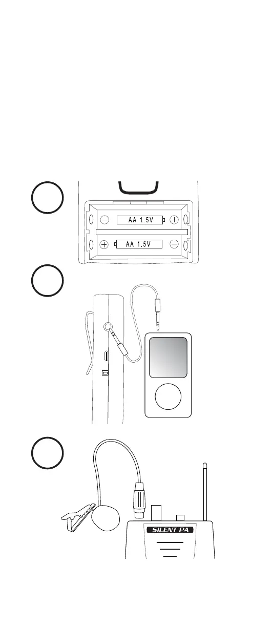1. Insert (2) AA batteries into the Bodypack Transmitter.