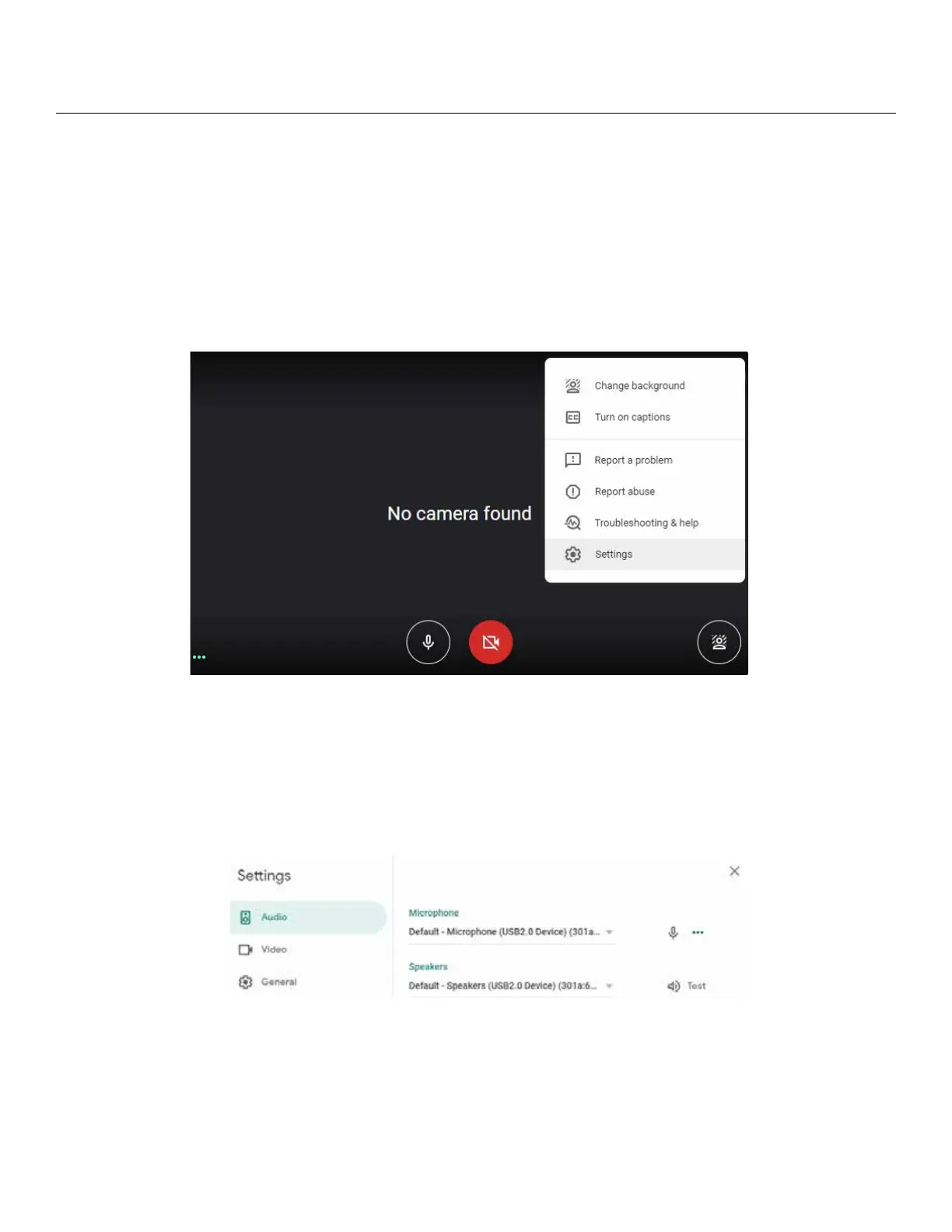 To change the microphone input, rst open the menu by clicking on the three vertical dots, then select settings.
