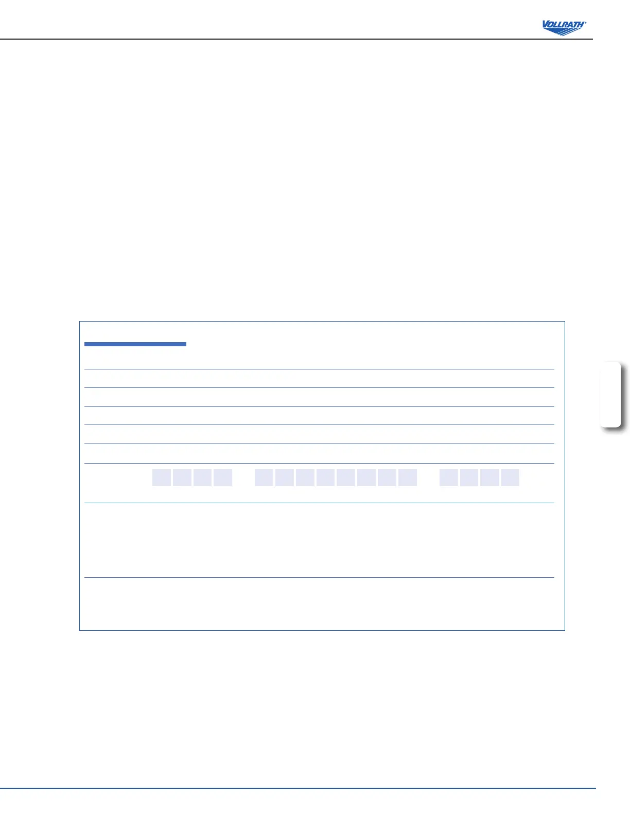 NO WEB ACCESS: If you do not have access to the web, kindly register by completing the warranty registration form and faxing it to The Vollrath Co. LLC ofce in the country of