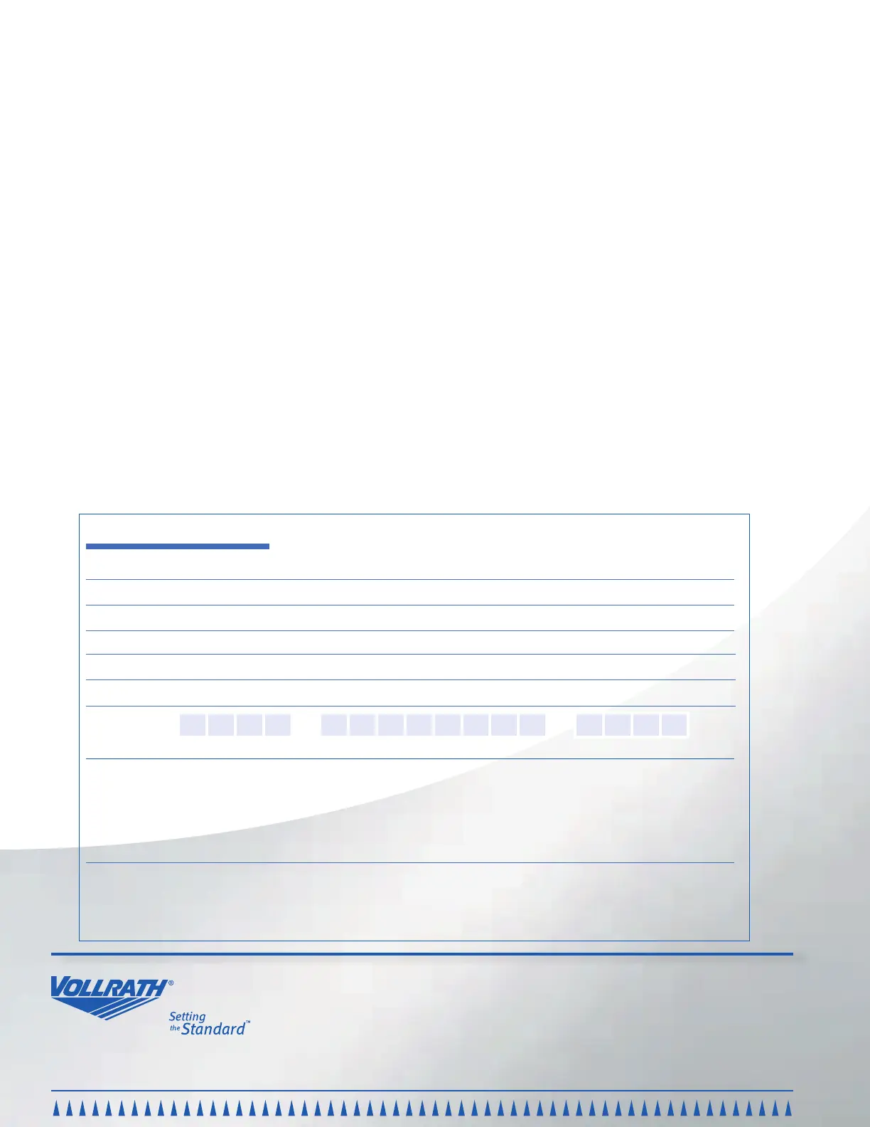 PAS D’ACCÈS AU WEB : Si vous n’avez pas accès au Web, enregistrez-la en remplissant le formulaire d’enregistrement à envoyer par fax au bureau Vollrath Co. LLC