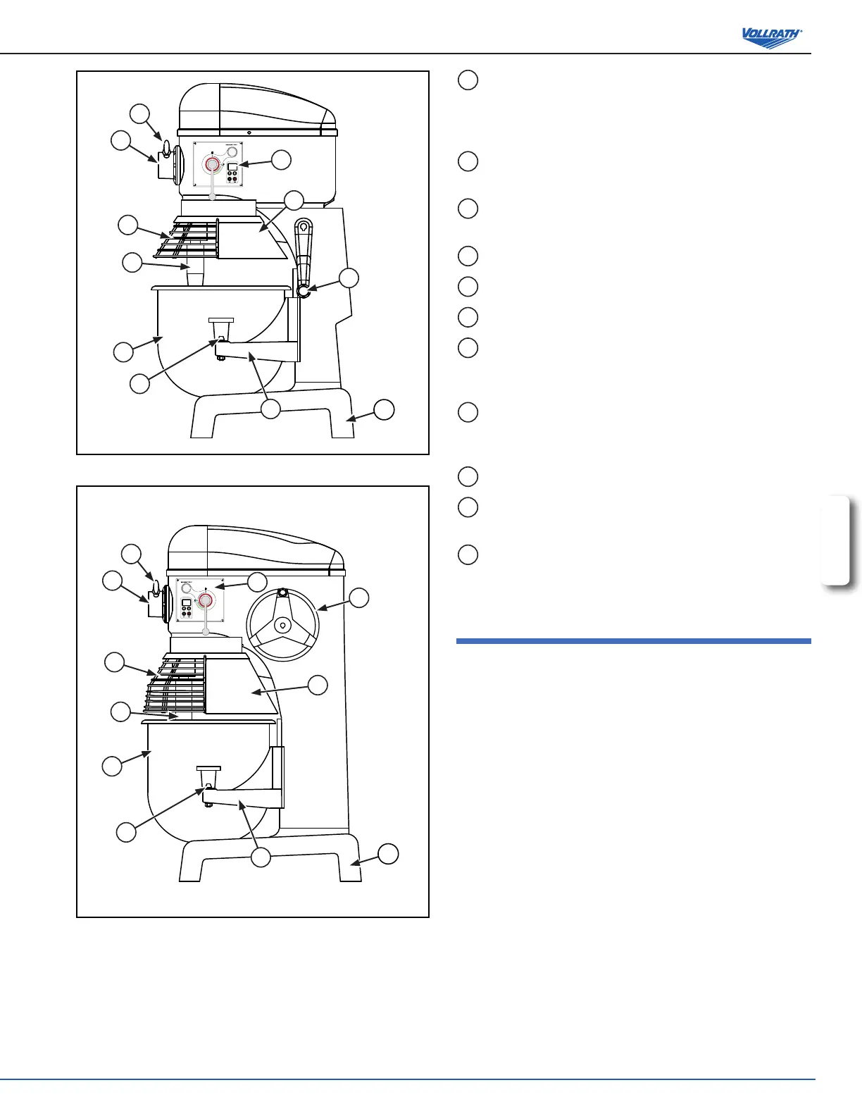 Figura 4. Características y controles de la batidora de 60 ct. gal. (66 L).