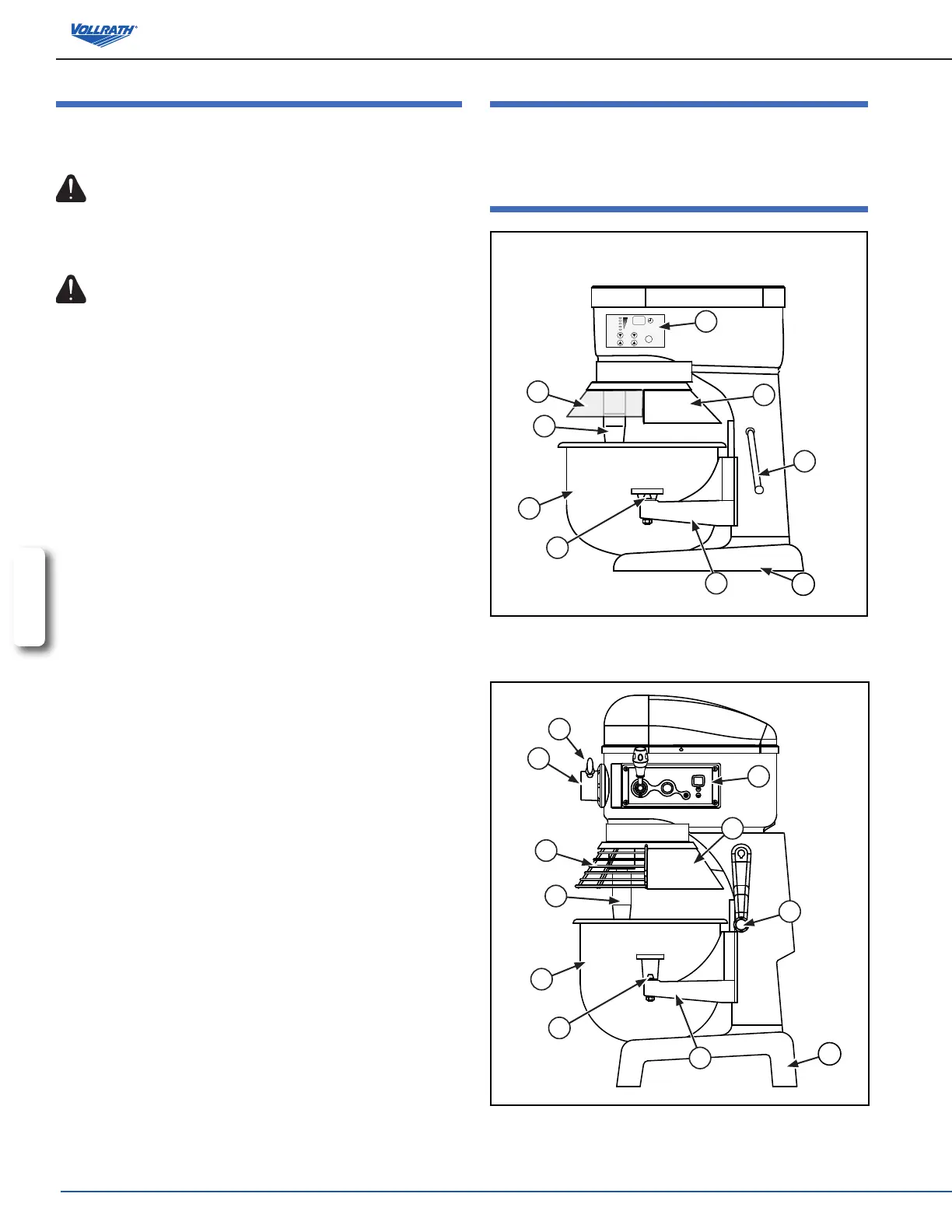 Figure 1. Mélangeur 20 qt (22 l) et 30 qt (33 l), caractéristiques et