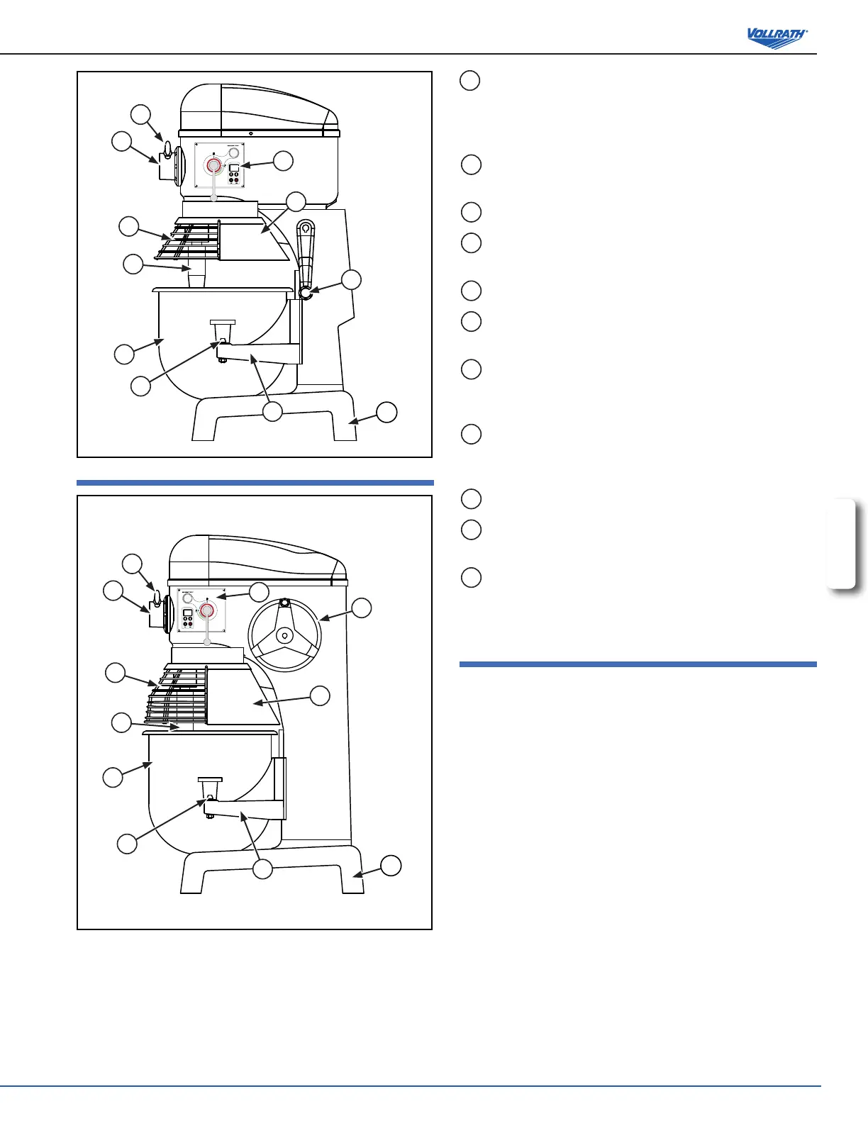 Figure 3. Mélangeur 40 qt (44 l), caractéristiques et commandes.