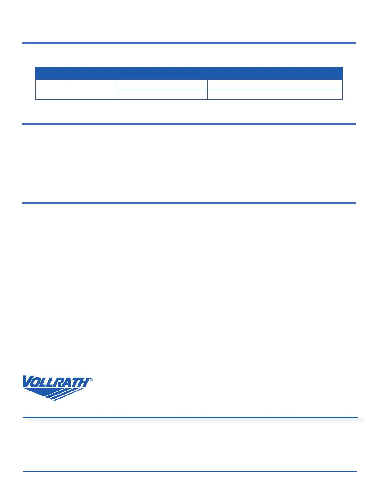 For complete warranty information, product registration and new product announcement, visit www.vollrath.com.