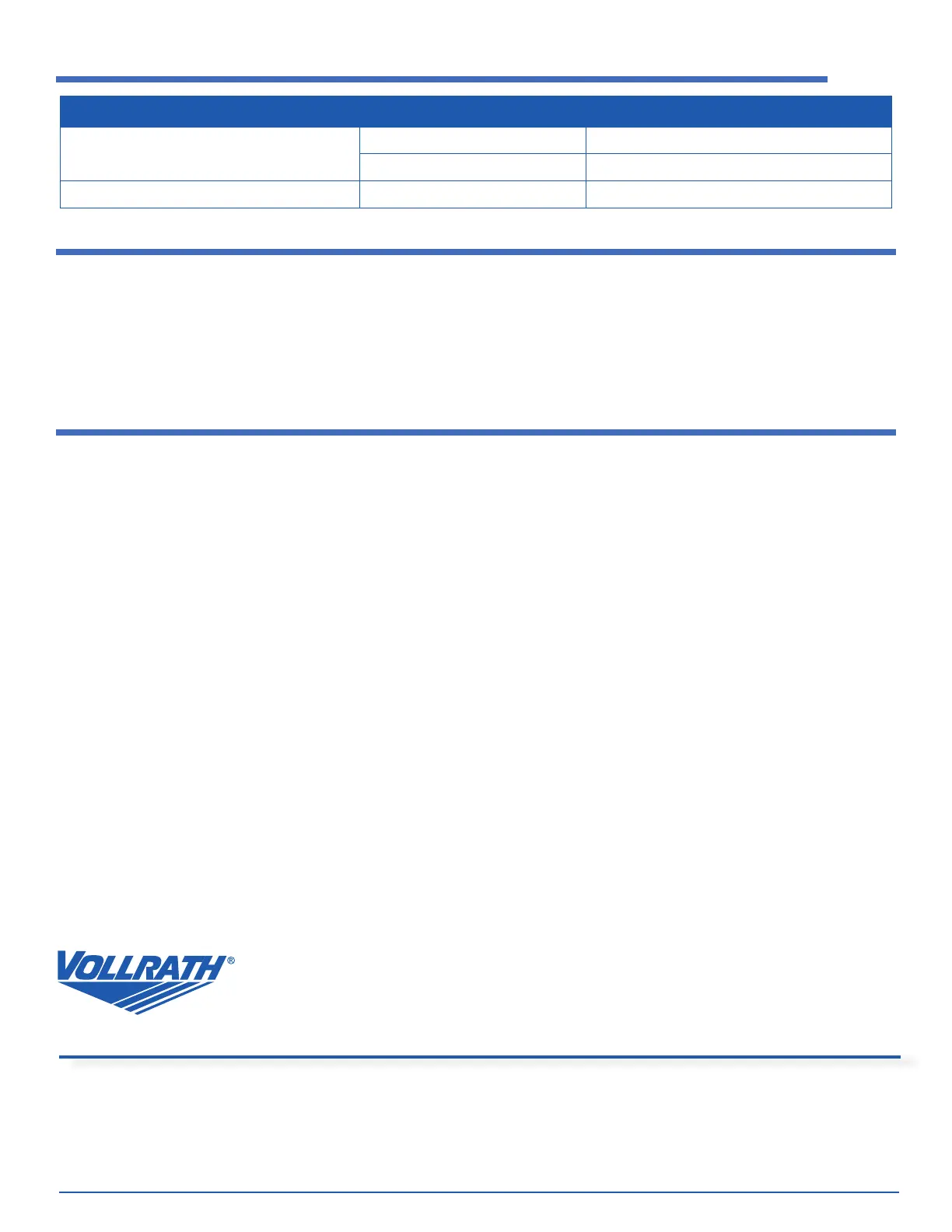 For complete warranty information, product registration and new product announcement, visit www.vollrath.com.