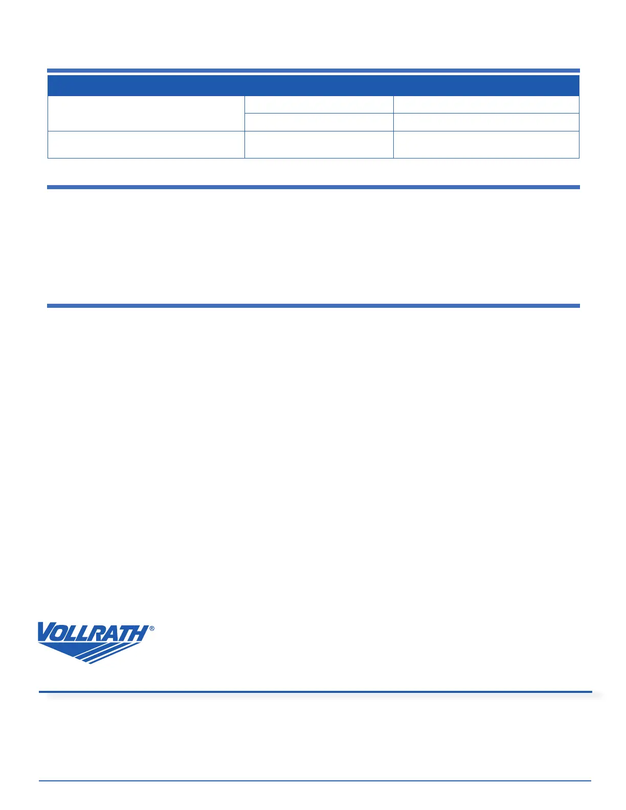 The Vollrath Company L.L.C. garantiza los productos que fabrica o distribuye contra defectos en materiales y fabricación por un período de un año, salvo según se especica en