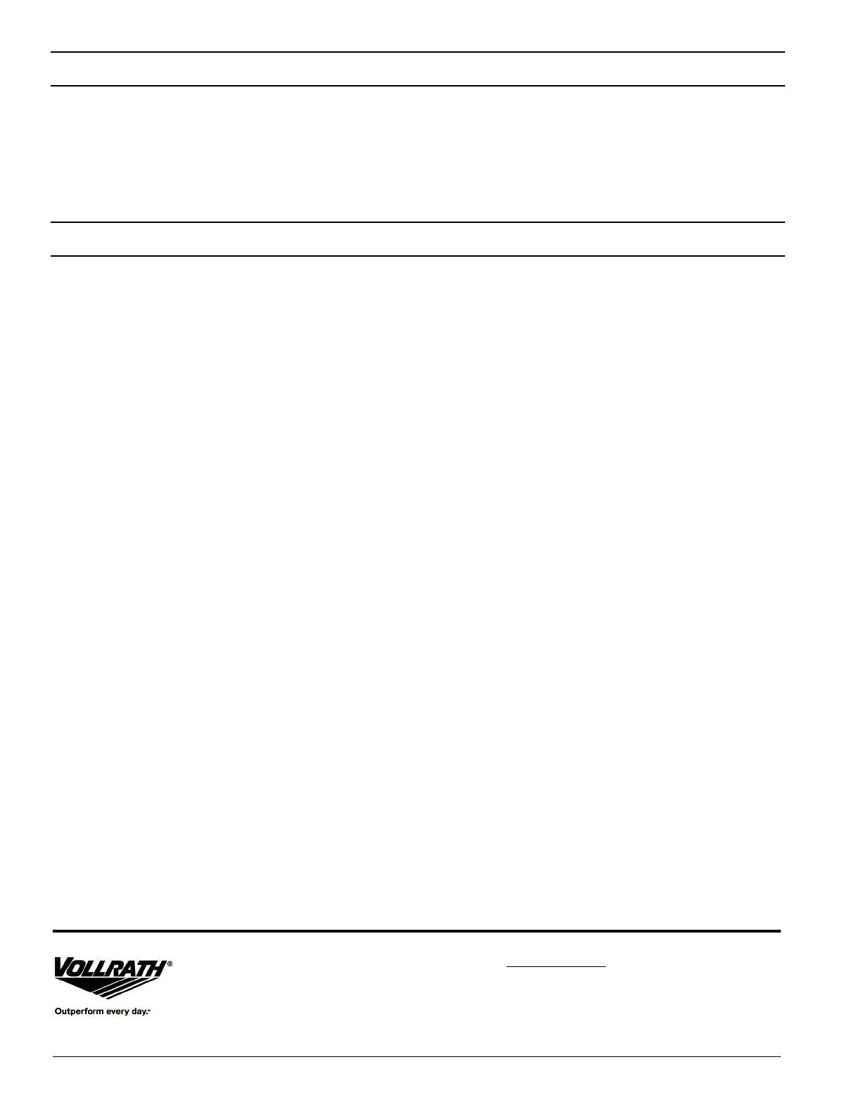 Lorsque vous contacterez les services techniques de Vollrath, tenez-vous prêt à fournir le numéro d'article, le numéro de modèle (s'il y a lieu),