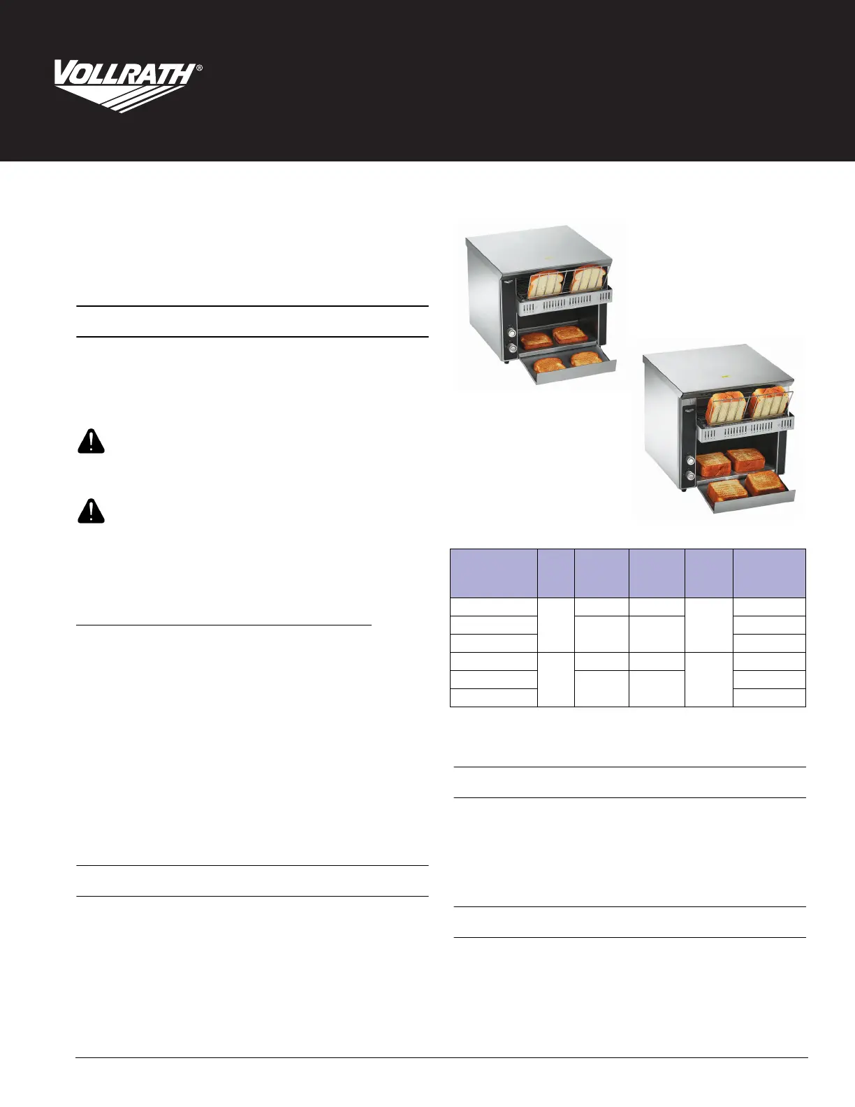 Thank you for purchasing this Vollrath equipment. Before operating the