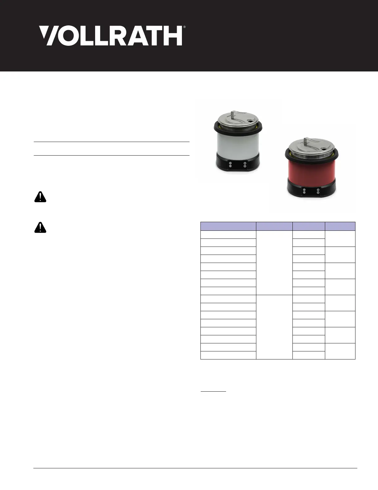 Gracias por comprar este equipo Vollrath. Antes de usar
