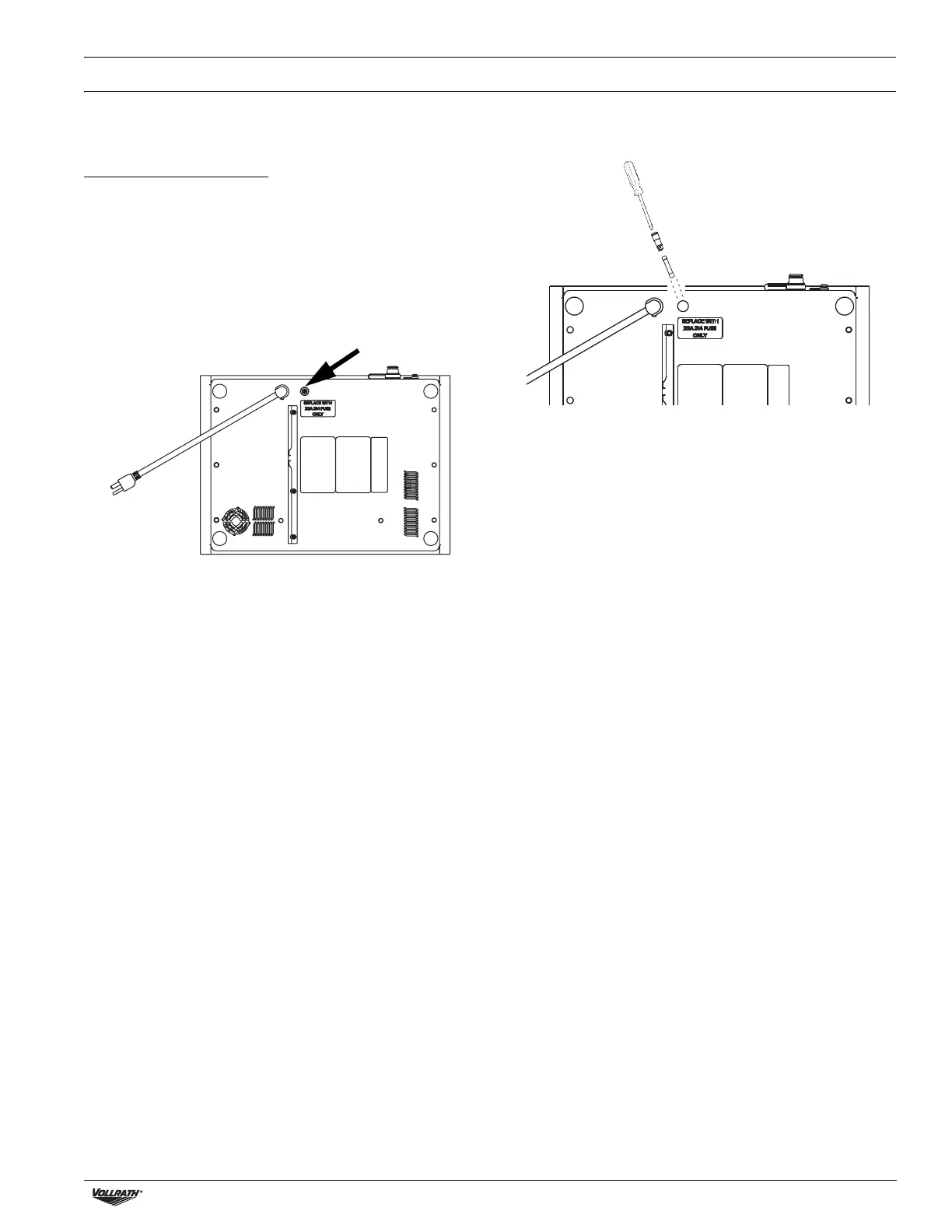 • Fusible 314 20A (disponible en Vollrath.com y en la mayoría de