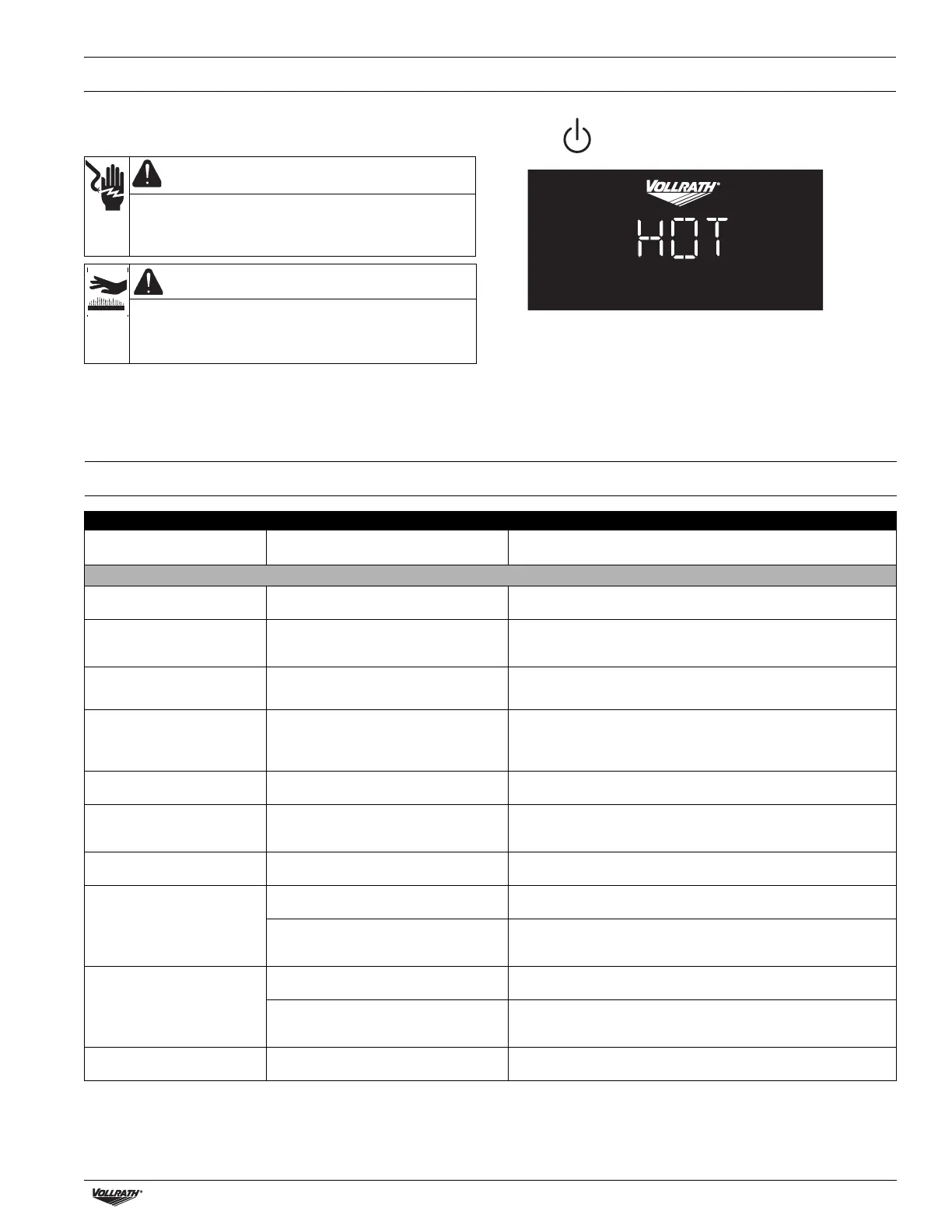 circuit. Contact Vollrath Technical Services if the problem persists.