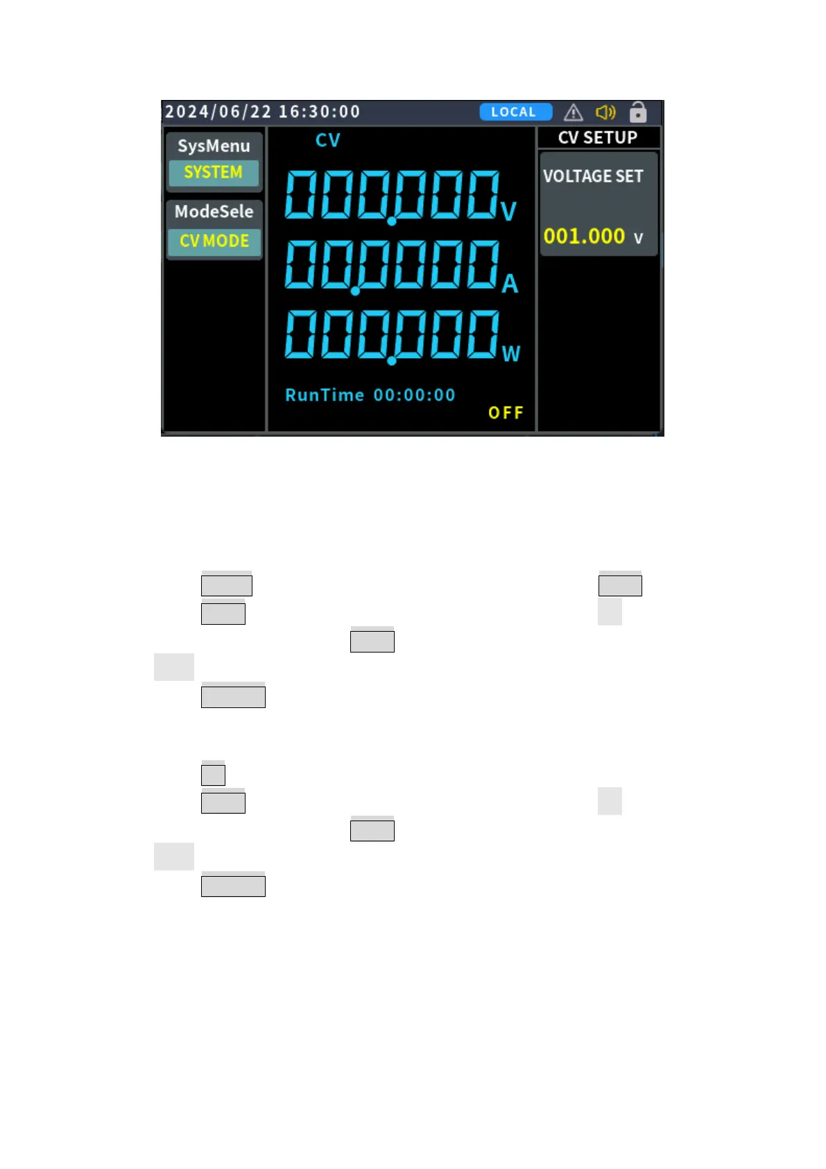 1. Press CV , at the same time, the user interface will switch into CV mode.