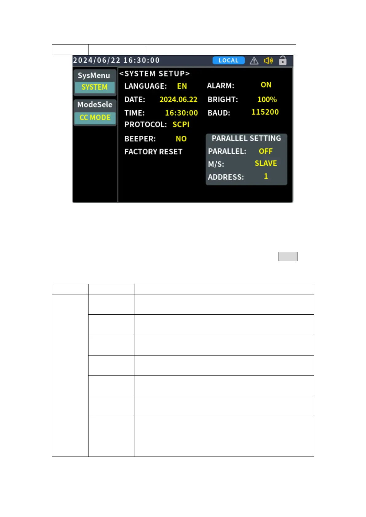 Select System Settings, then choose Parameter Settings. Press the Enter