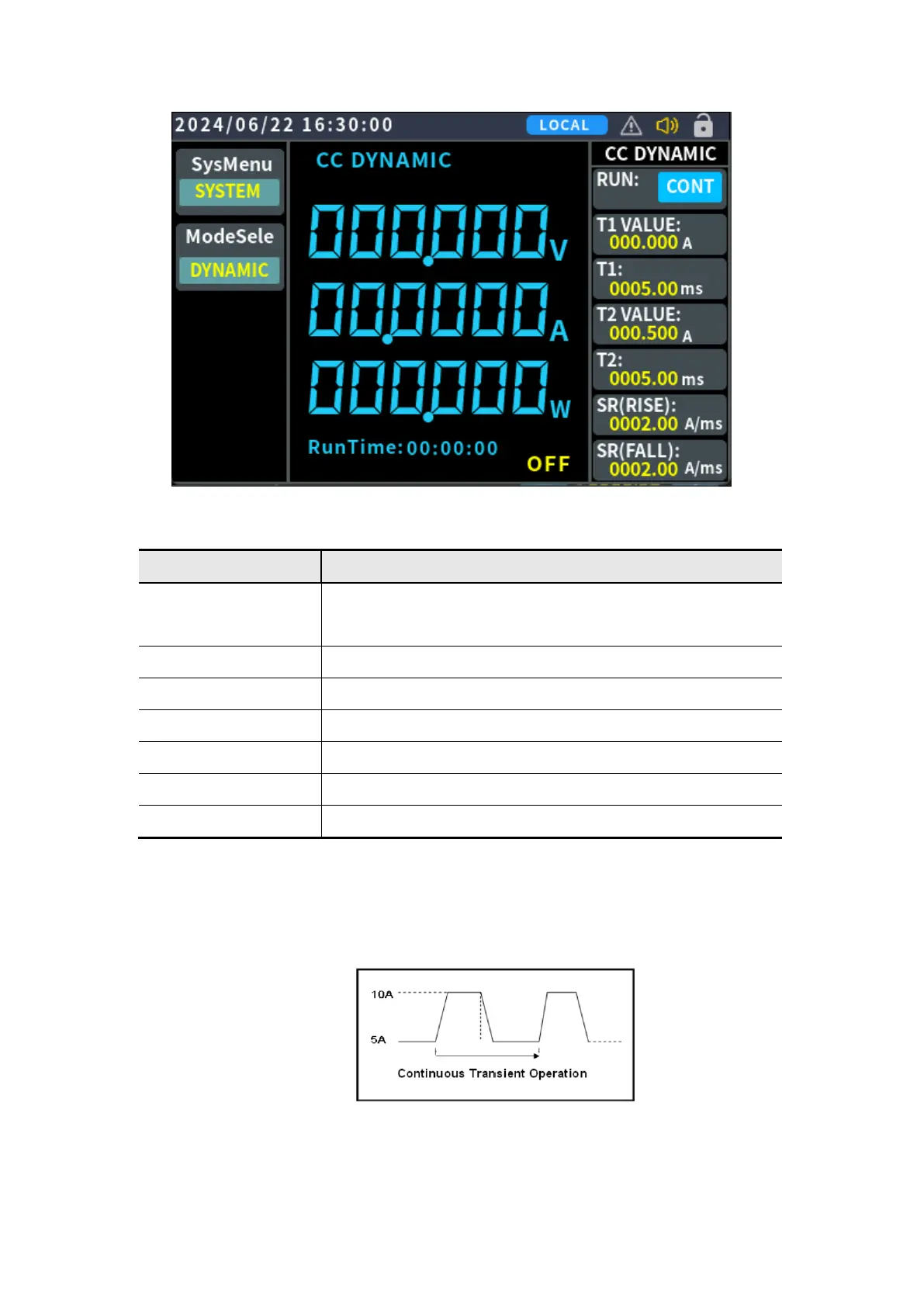 In continuous mode, when dynamic test operation is enabled, the load will