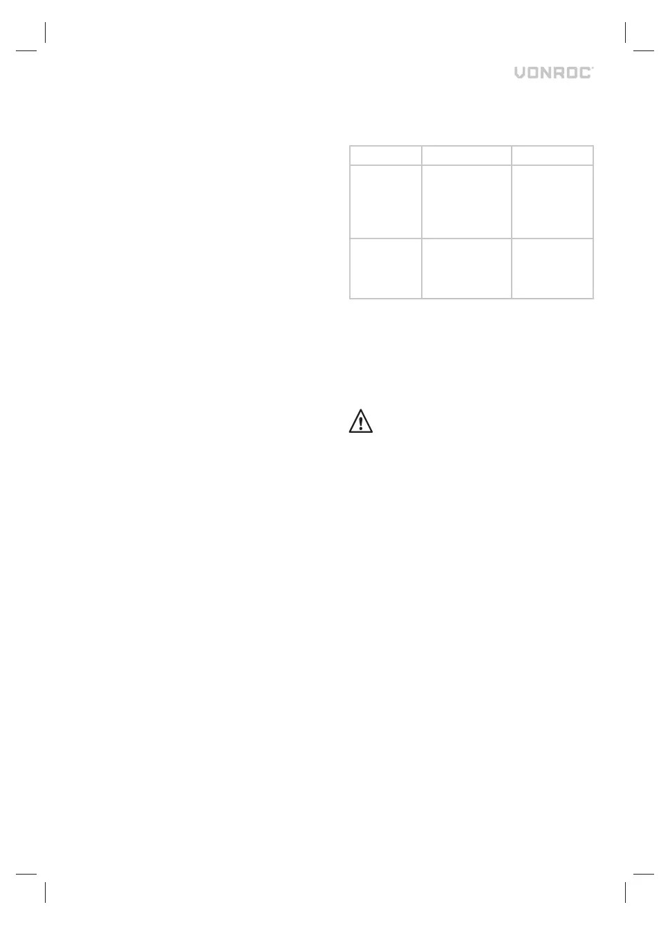 și/sau amanoperei, contactați direct VONROC.
