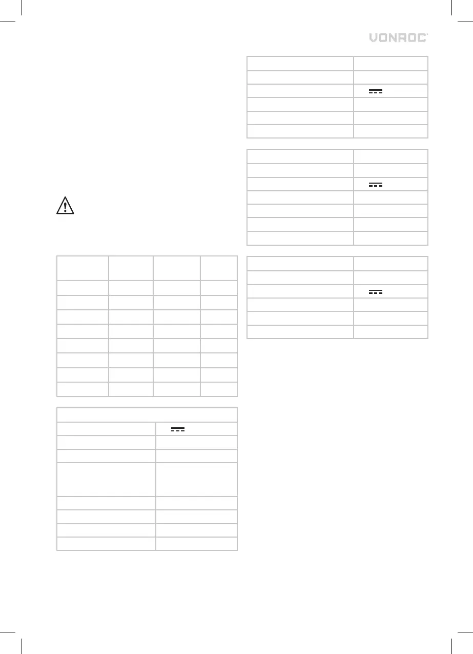 Only use the following batteries of the VONROC