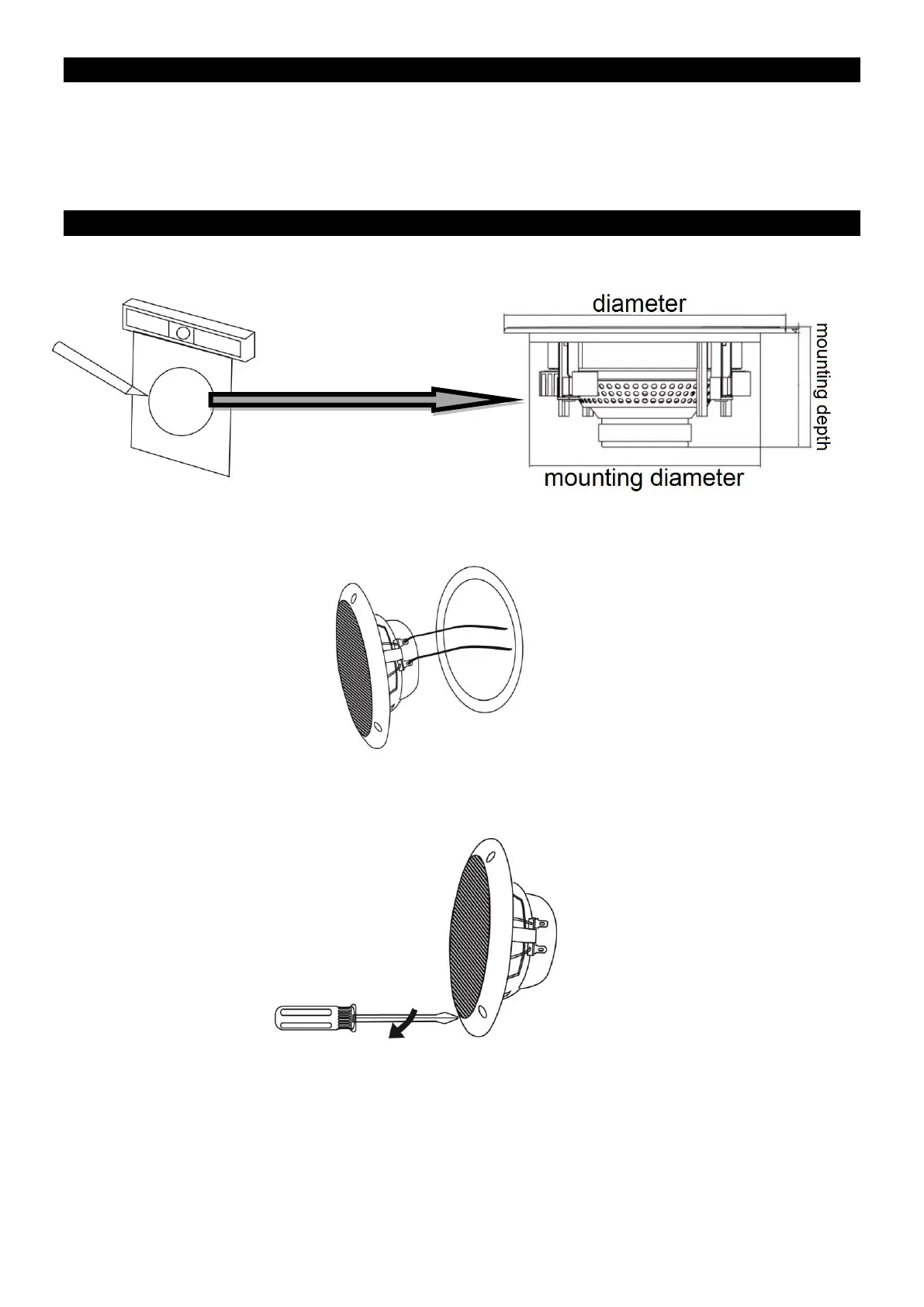 1. Drill a hole big enough to fit the speaker (check technical specification sheet for size).