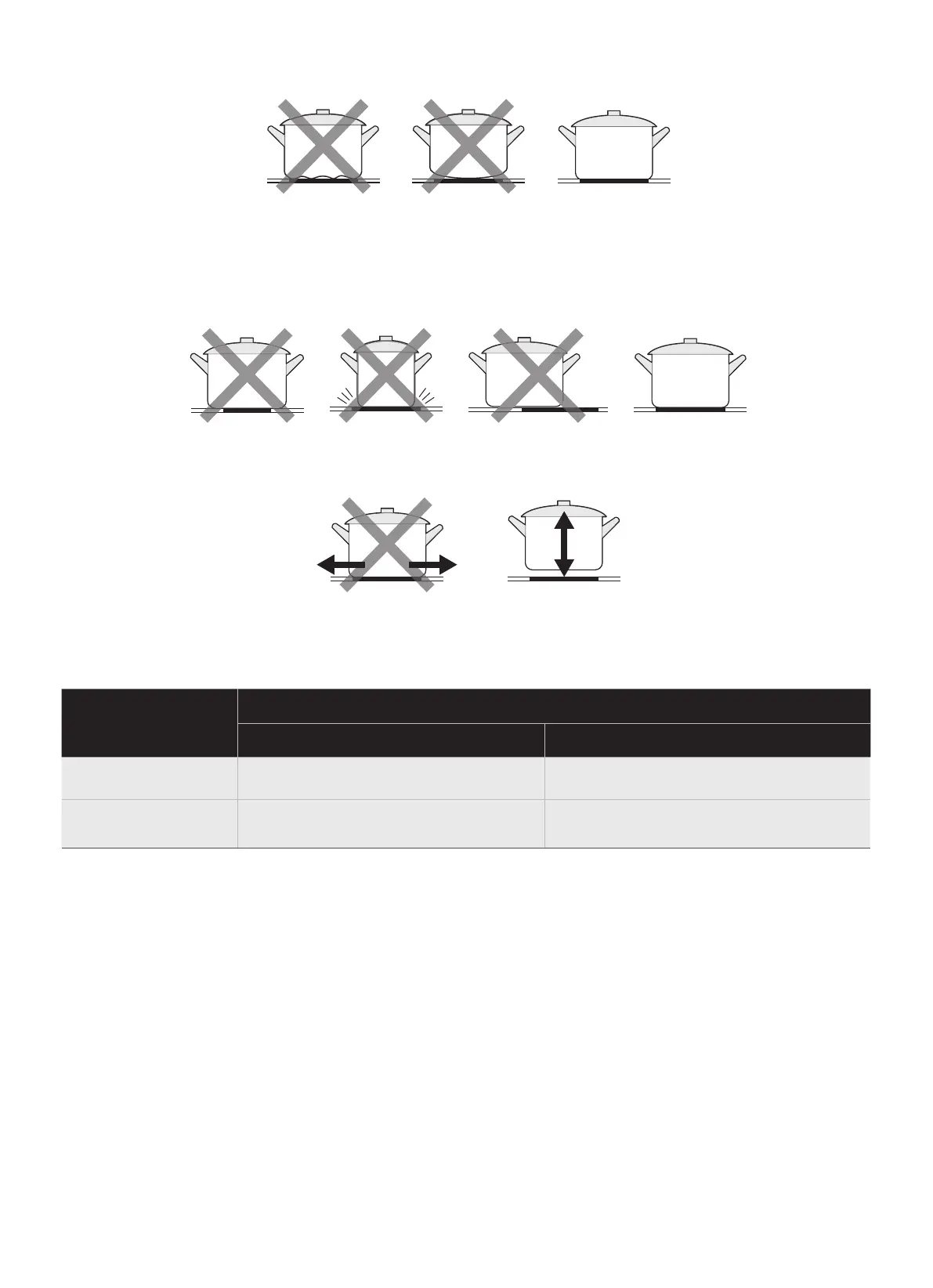 To obtain the best eciency of your hob, please place the pan in the centre of the cooking zone.