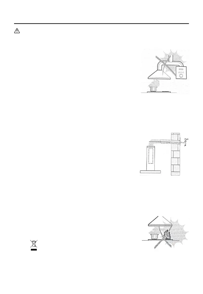 ● Do not connect the extractor hood to exhaust ducts carrying combustion flumes (boilers,