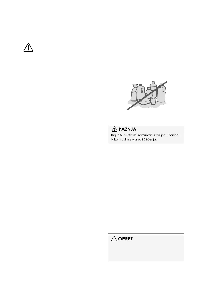 vertikalnog zamrzivača ili kontaminirati hranu.