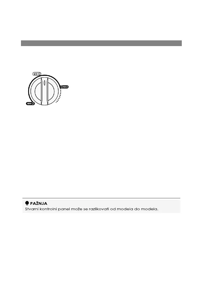 Prilikom prvog instaliranja uređaja, postavite dugme za regulaciju temperature na