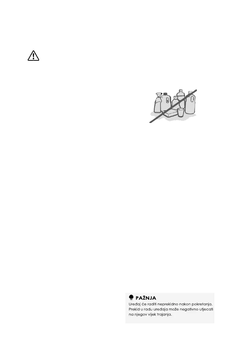 Nemojte koristiti sprejeve, električne grijače, sušila za