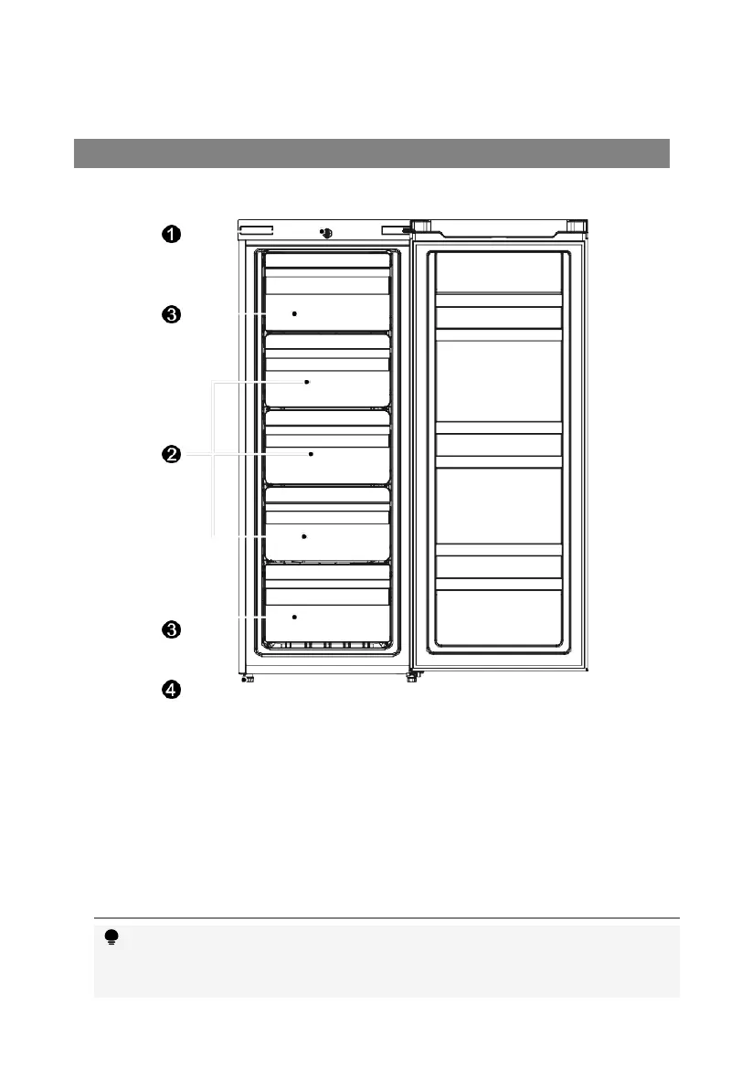 tabuleiros, gavetas, prateleiras e caixas de cubos de gelo, na posição fornecida pelo