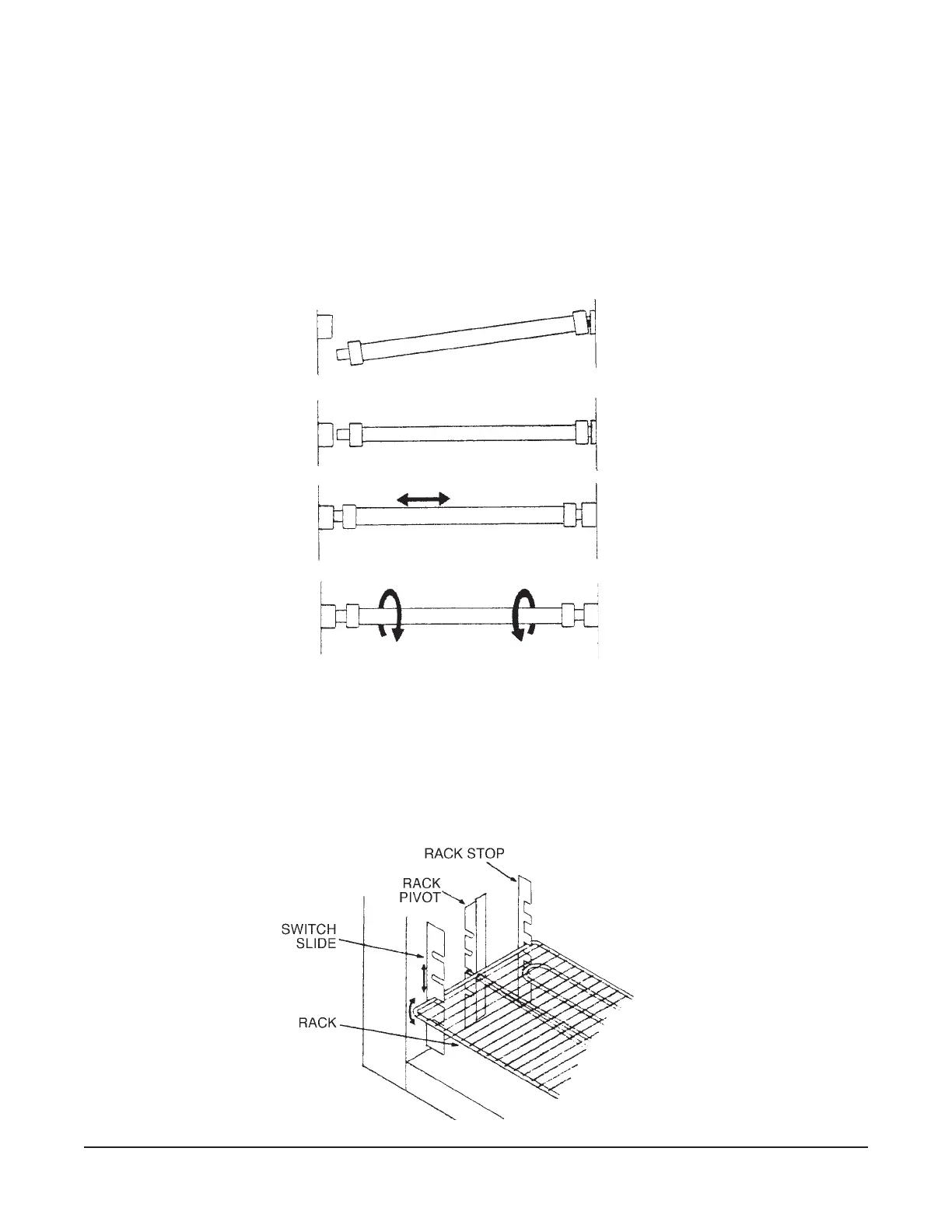 2. Line up the rack evenly and push it straight back until the pivot points can be inserted into the