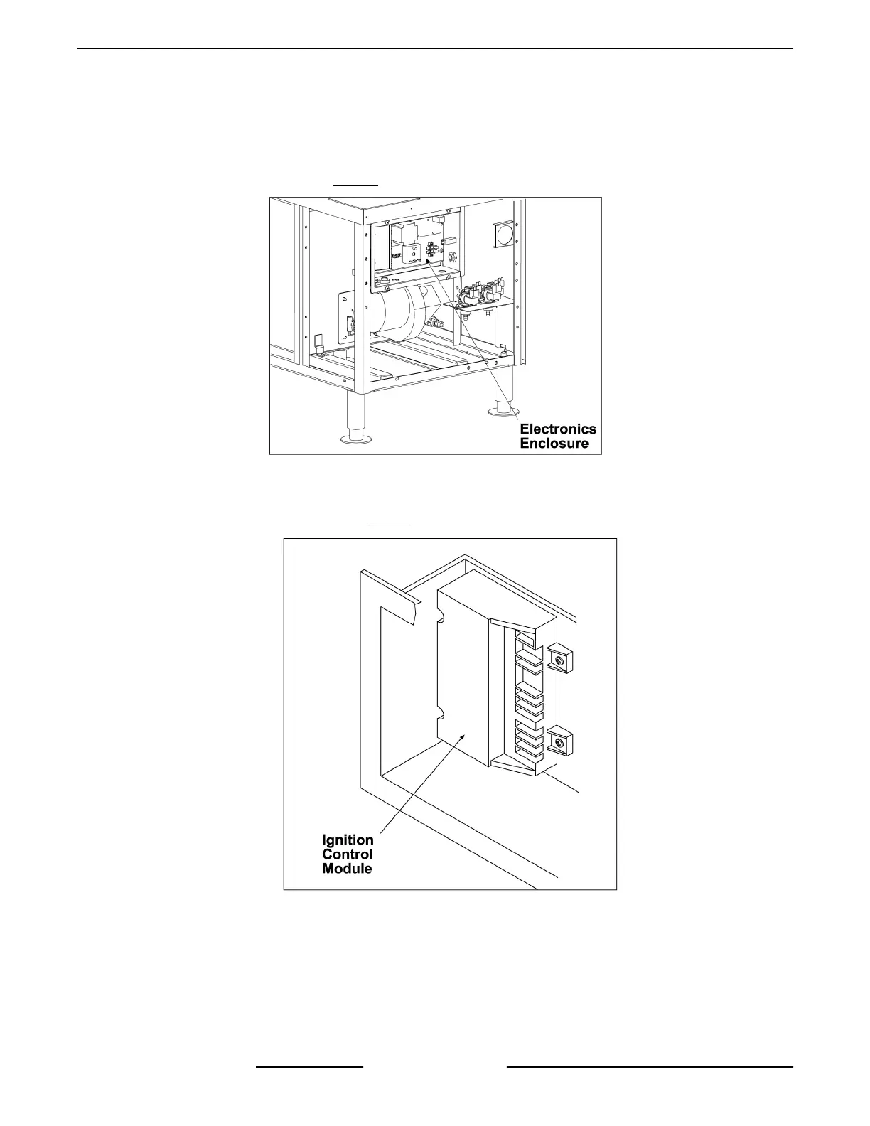 The ignition control module and ignition control module transformer are located in the electronics enclosure behind
