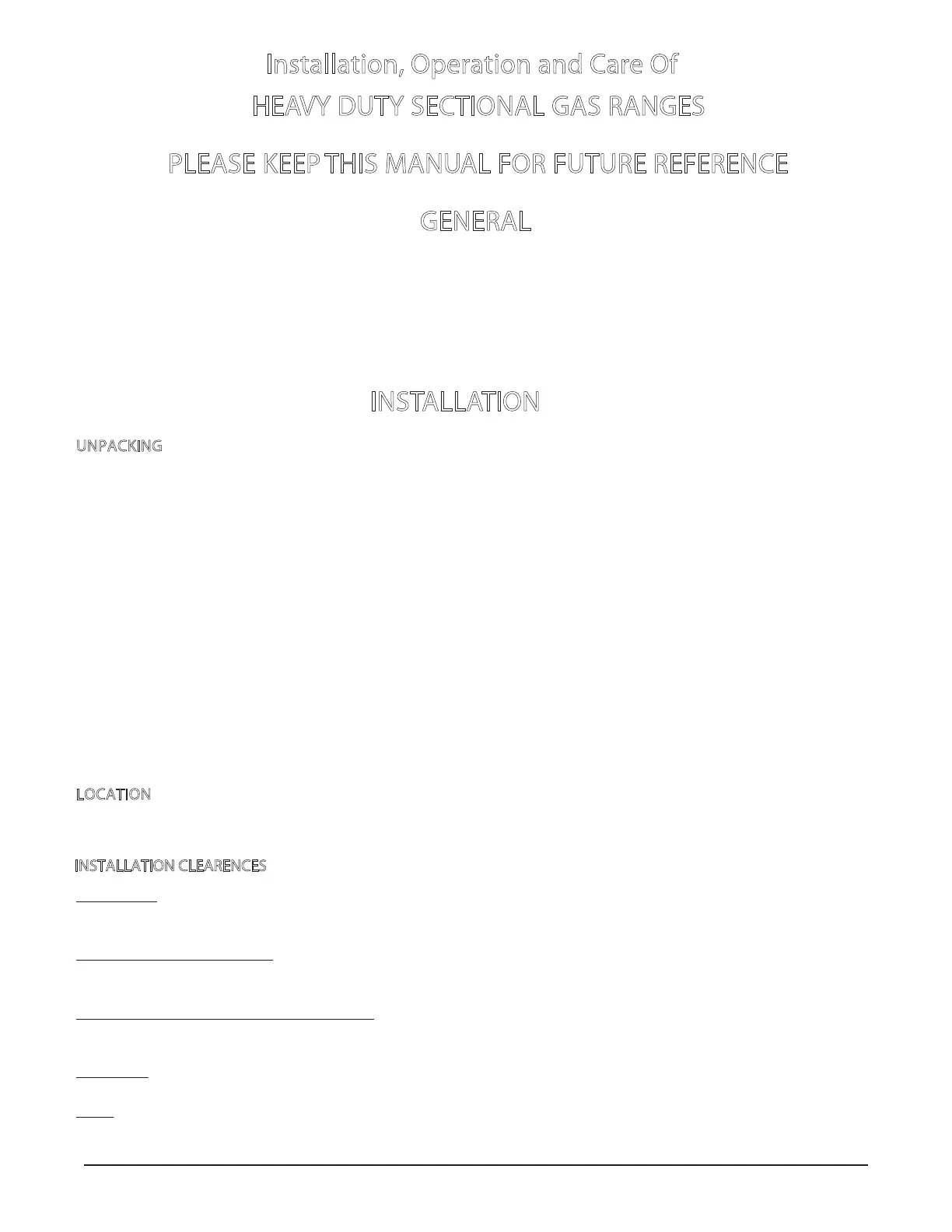 Heavy duty sectional ranges are produced with quality workmanship and material. Proper installation, usage