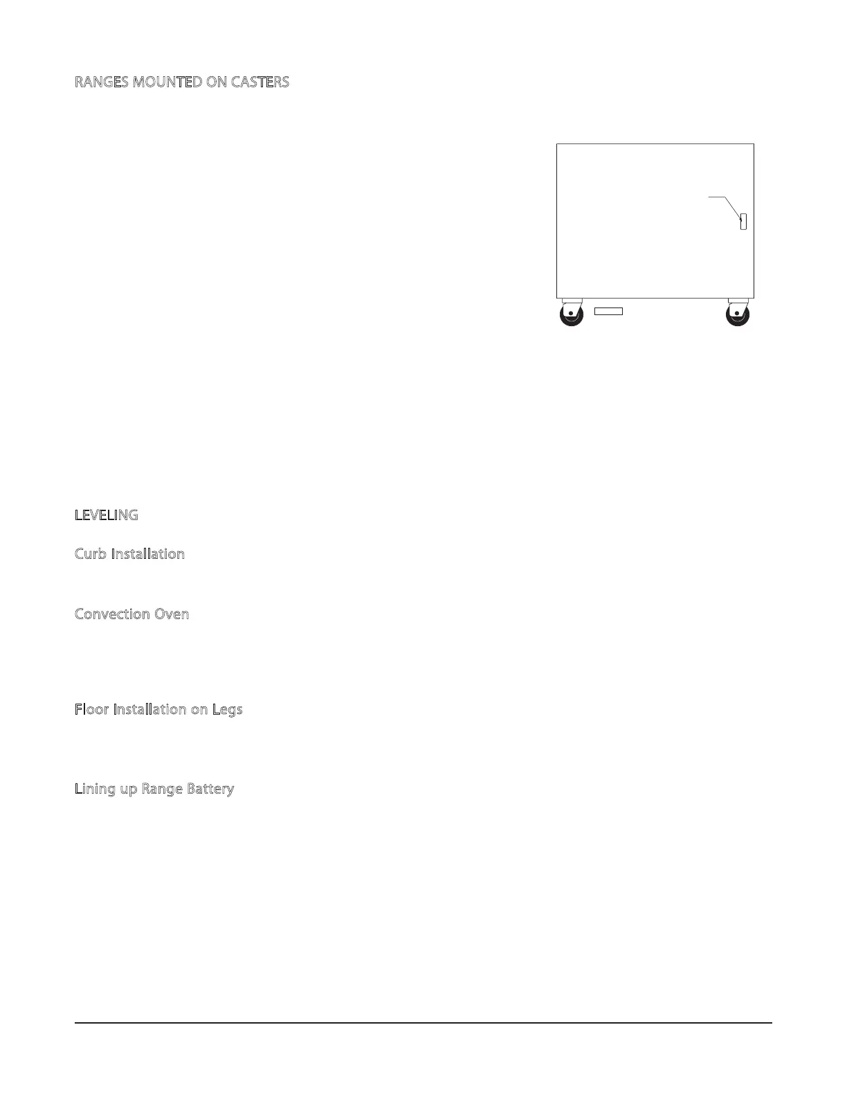 In batteries of ranges, it is recommended that the center range be installed and leveled rst. Level each