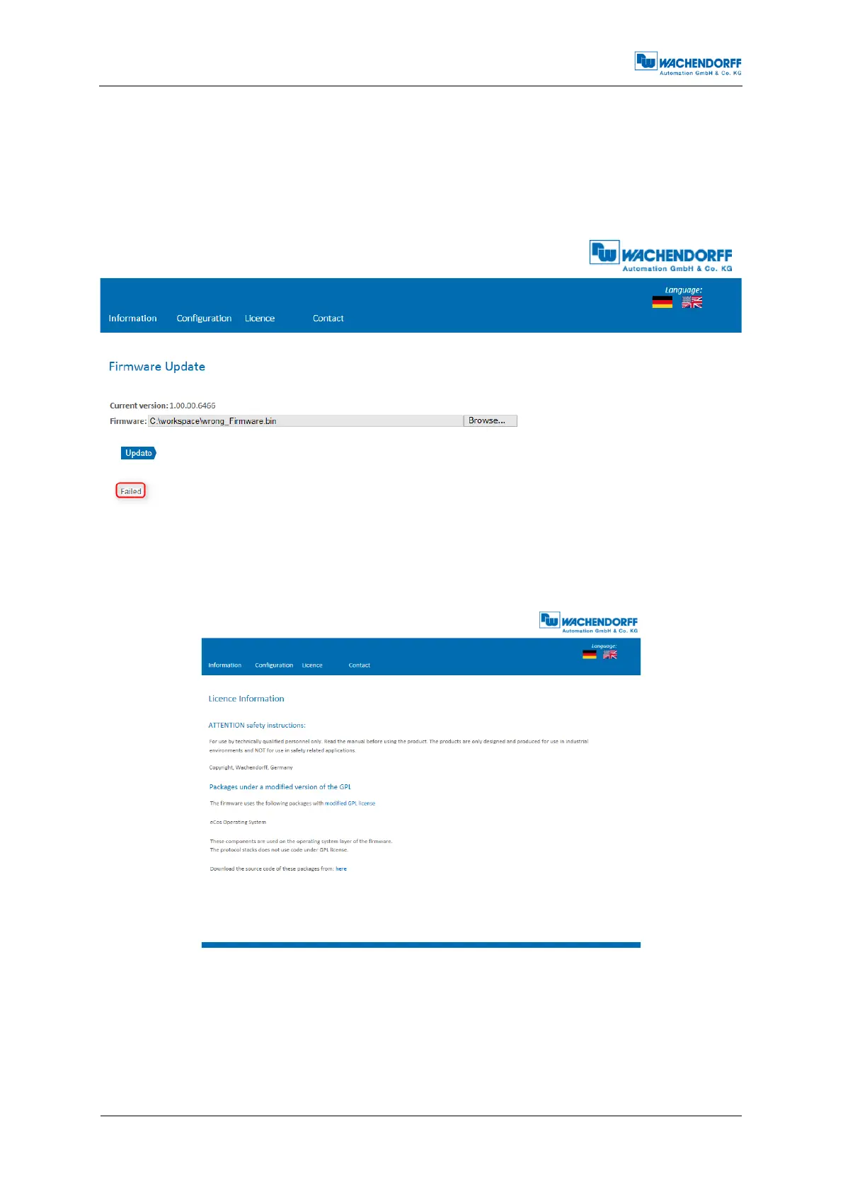In case of a failure during the firmware update process (see Figure 5.9) please double