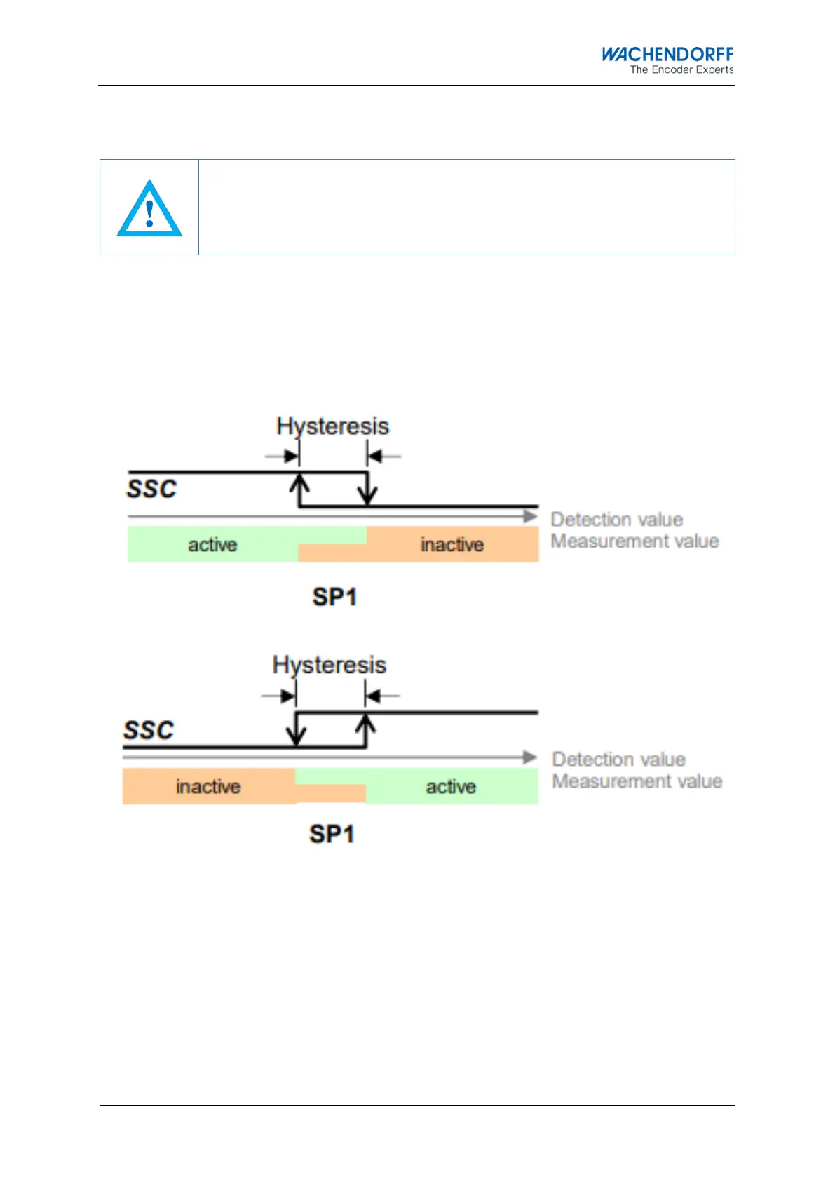 the value set in SP1. If a hysteresis has been set, this is also considered as shown in