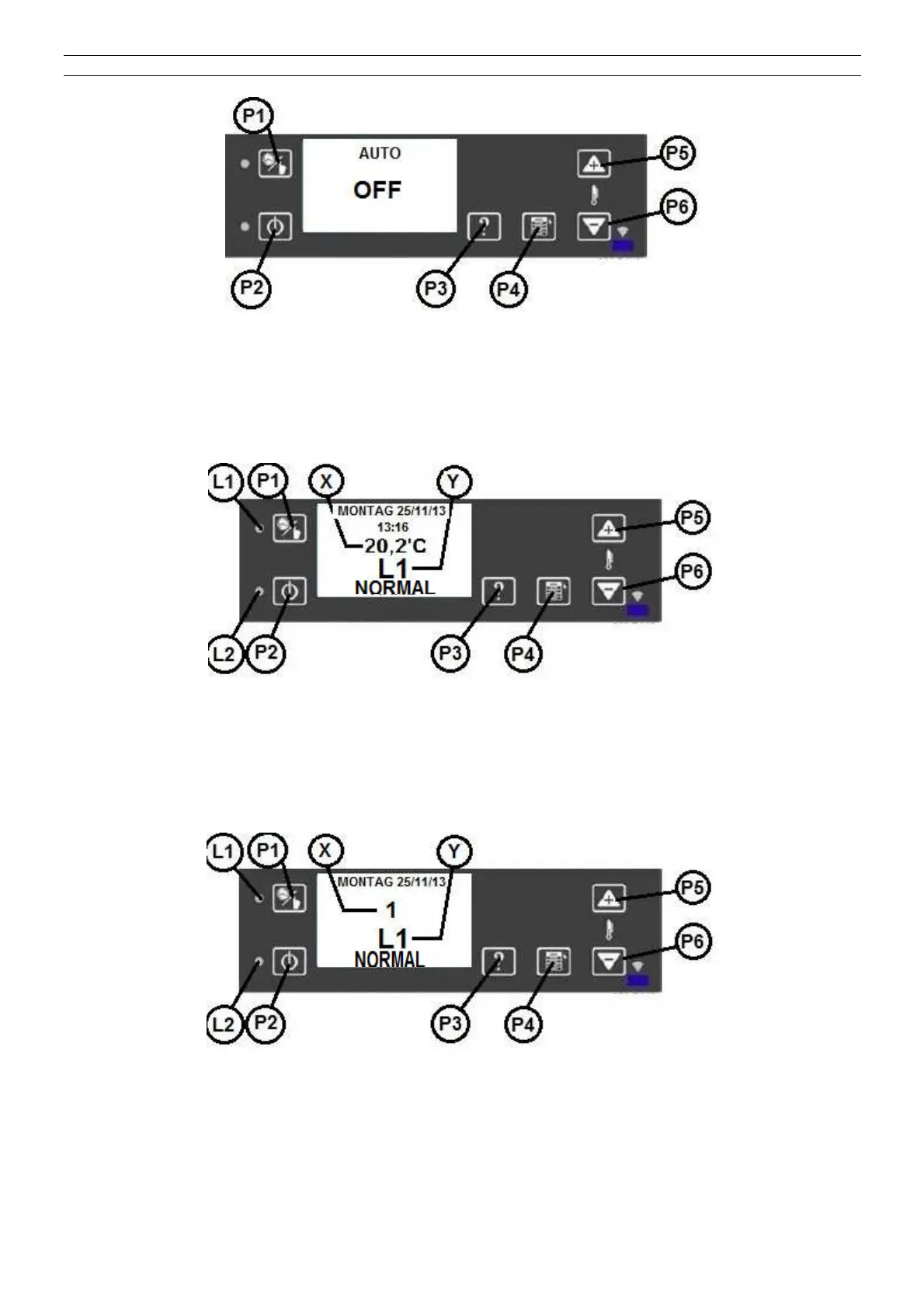 Zur Erhöhung der Leistungsstufe drücken Sie die Taste P5, zur Senkung die Taste P6.