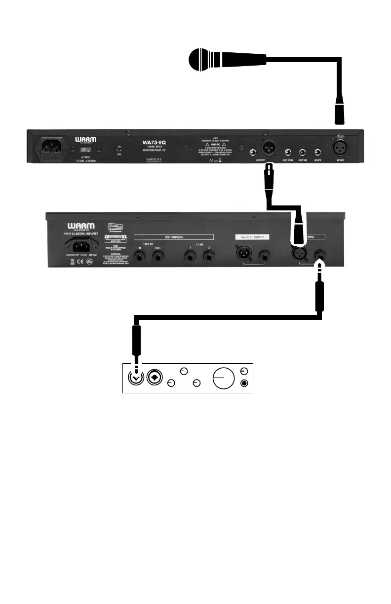 Dans cet exemple, un microphone est connecté à l’entrée d’un WA73-EQ, qui envoie le signal dans le compresseur