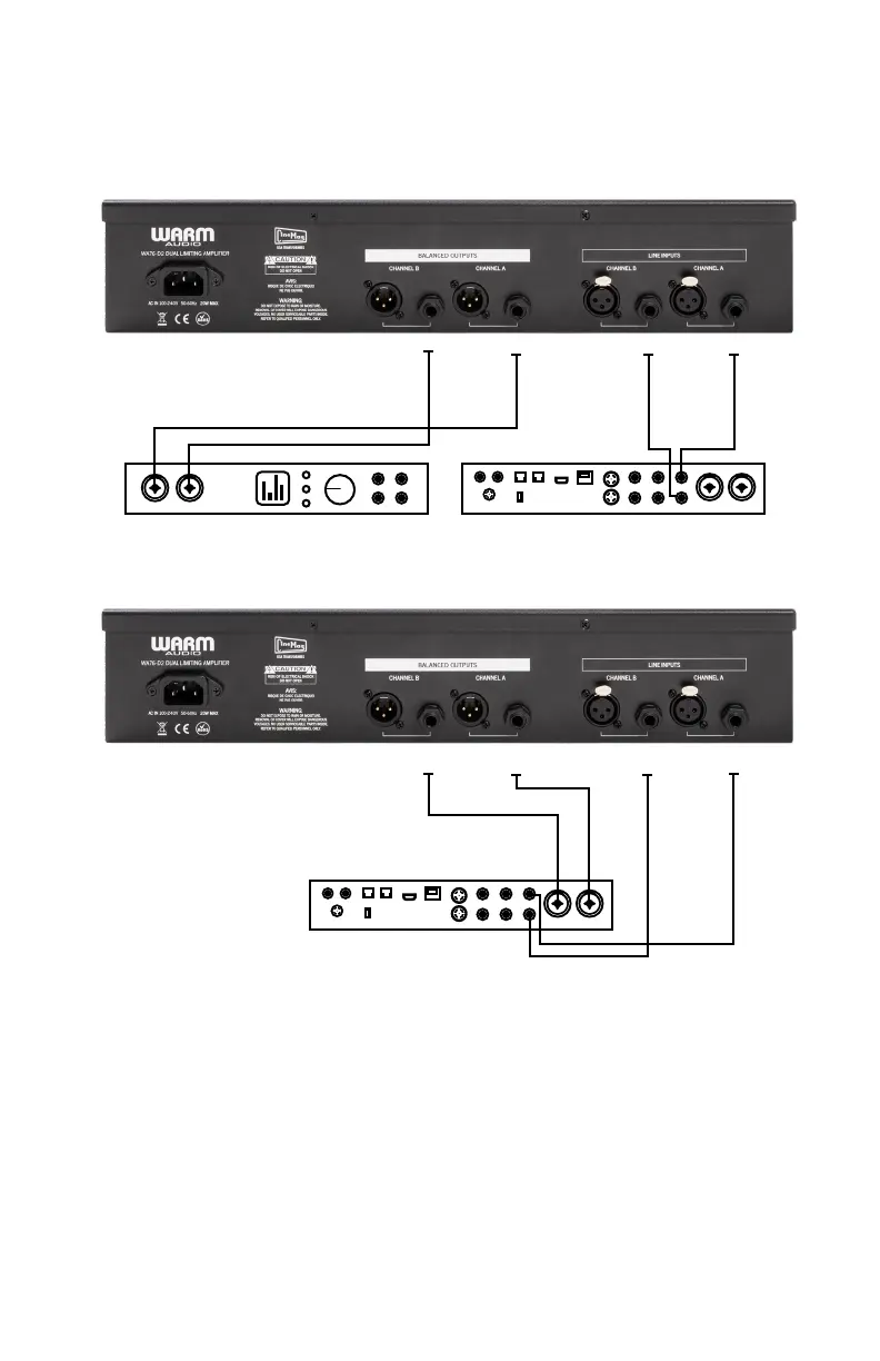 the WA76-D2 compressor via balanced TRS patch cables. The WA76-D2 then feeds audio at LINE level to balanced