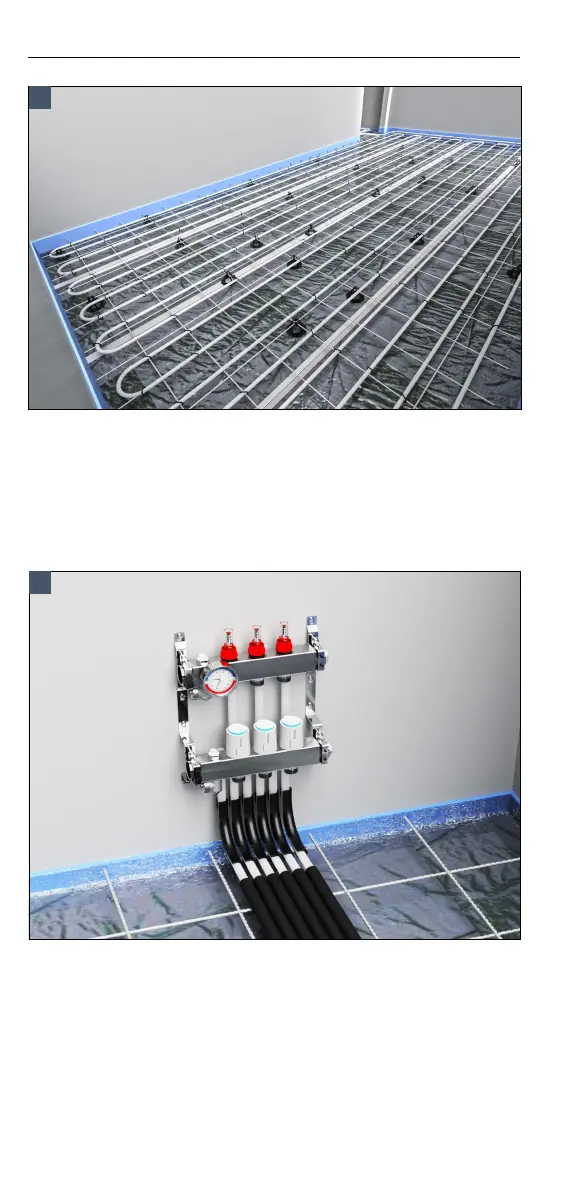 • For the pipe bends, secure the pipe to the reinforcement mesh using