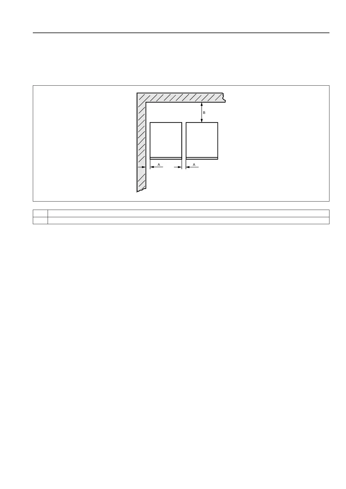 The figure shows minimum distance to a wall and/or other machines. Failure to respect the prescribed distances will