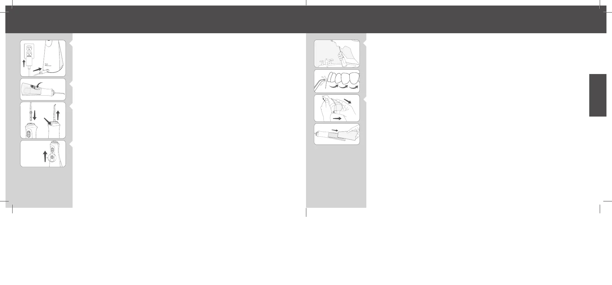 la gencive et faites une pause brève entre les dents. Continuez jusqu’à ce que vous ayez nettoyé l’intérieur et l’extérieur des dents