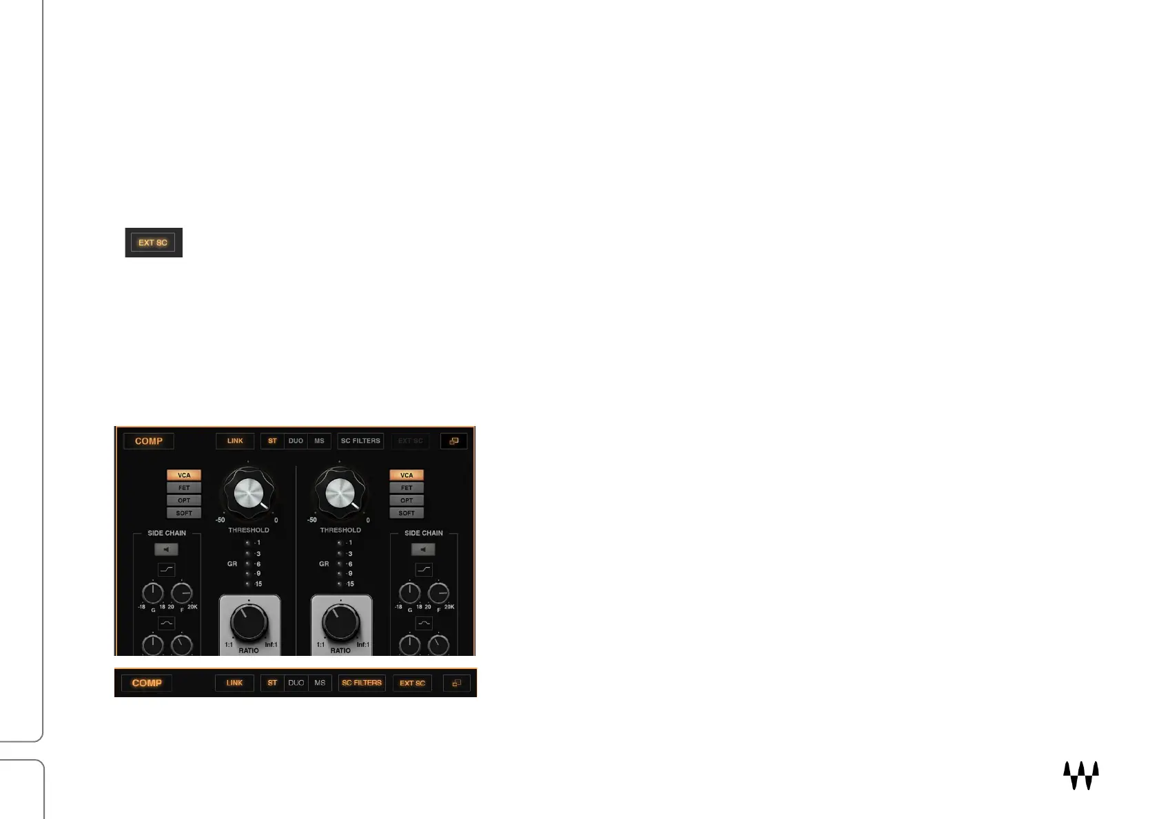By default, all sidechain controls are inactive: SC on/off; EXT SC;
