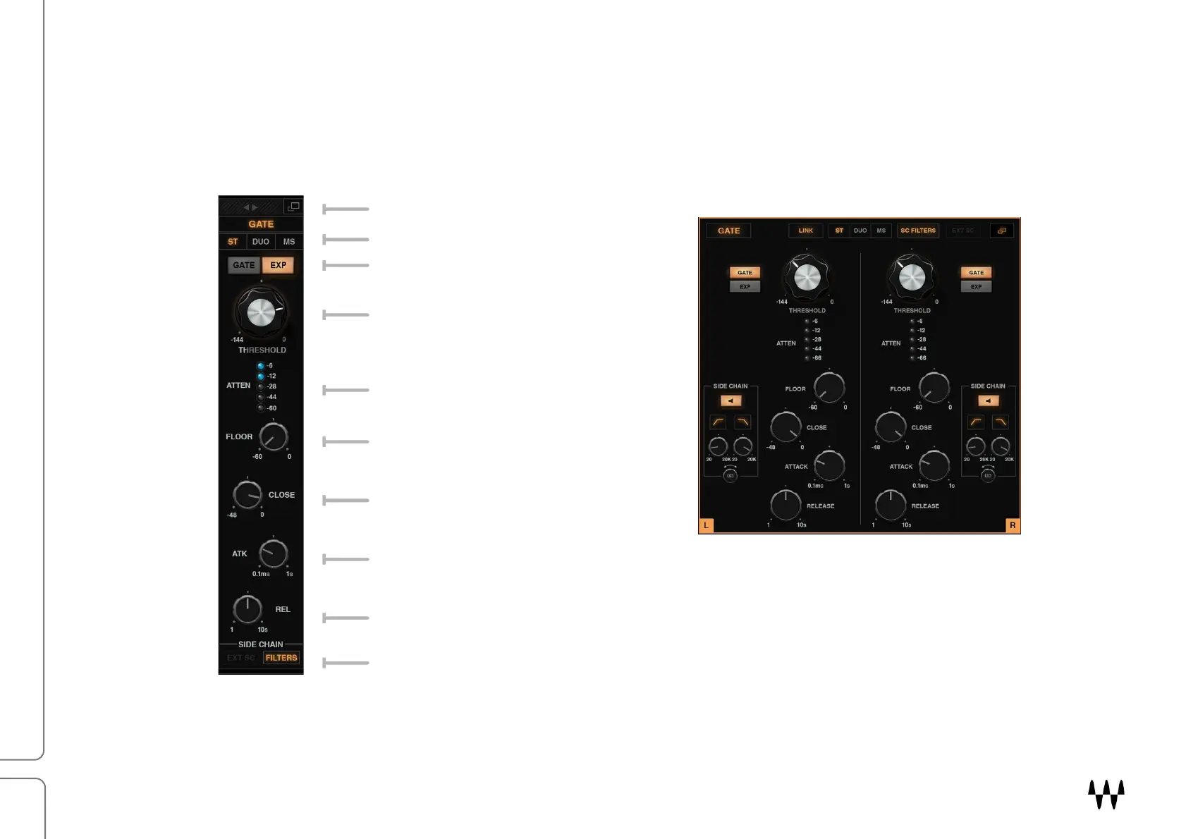Range and Close, which let you adjust the maximum reduction to maintain a consistent noise floor. The sidechain