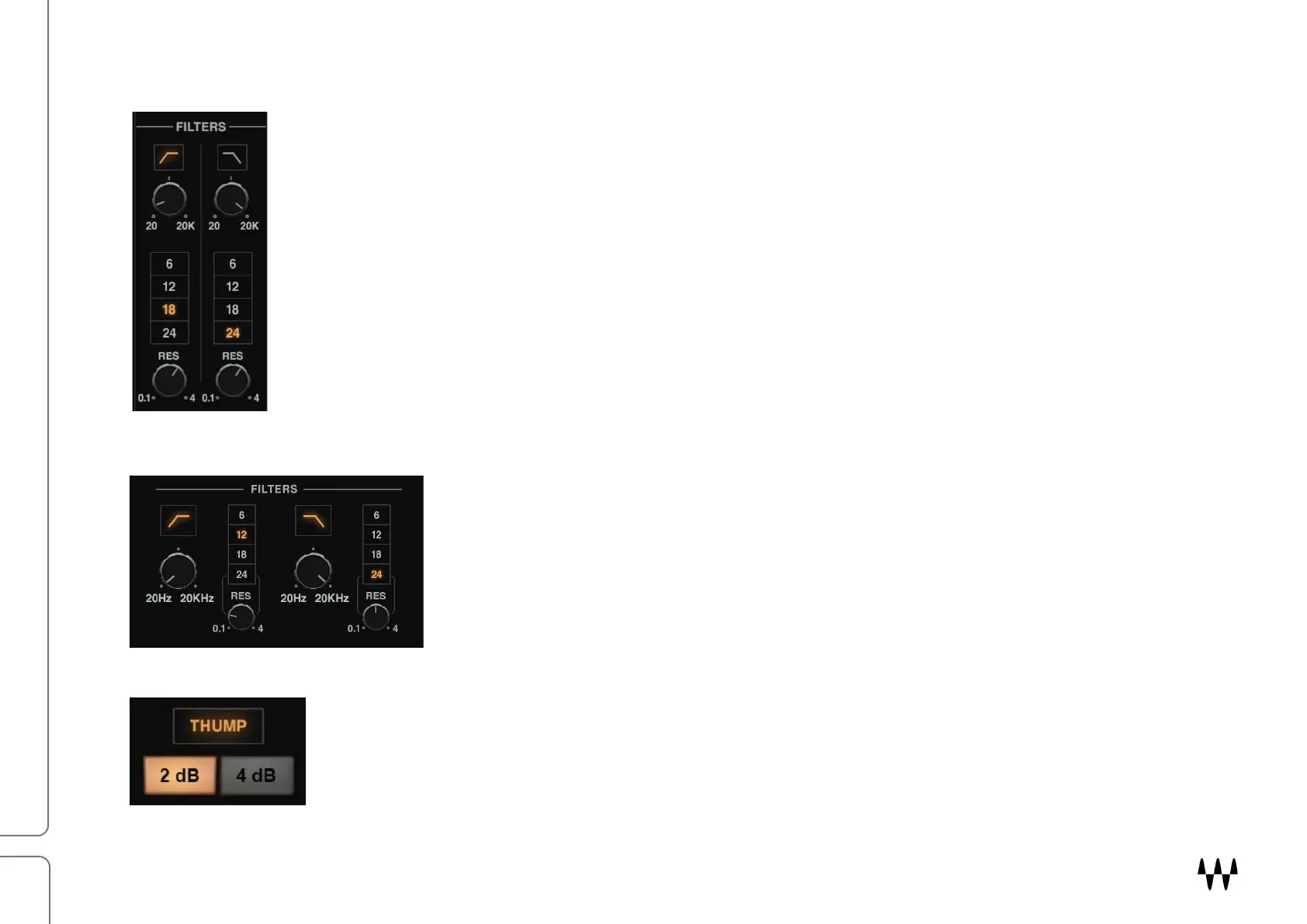 setting, there is very little resonance. At its highest setting, additional resonance is added to these filters.