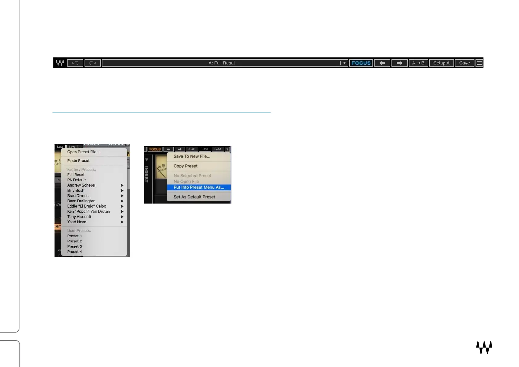 Use the bar at the top of the plugin to save and load presets, compare settings, undo and redo steps, and resize the plugin.