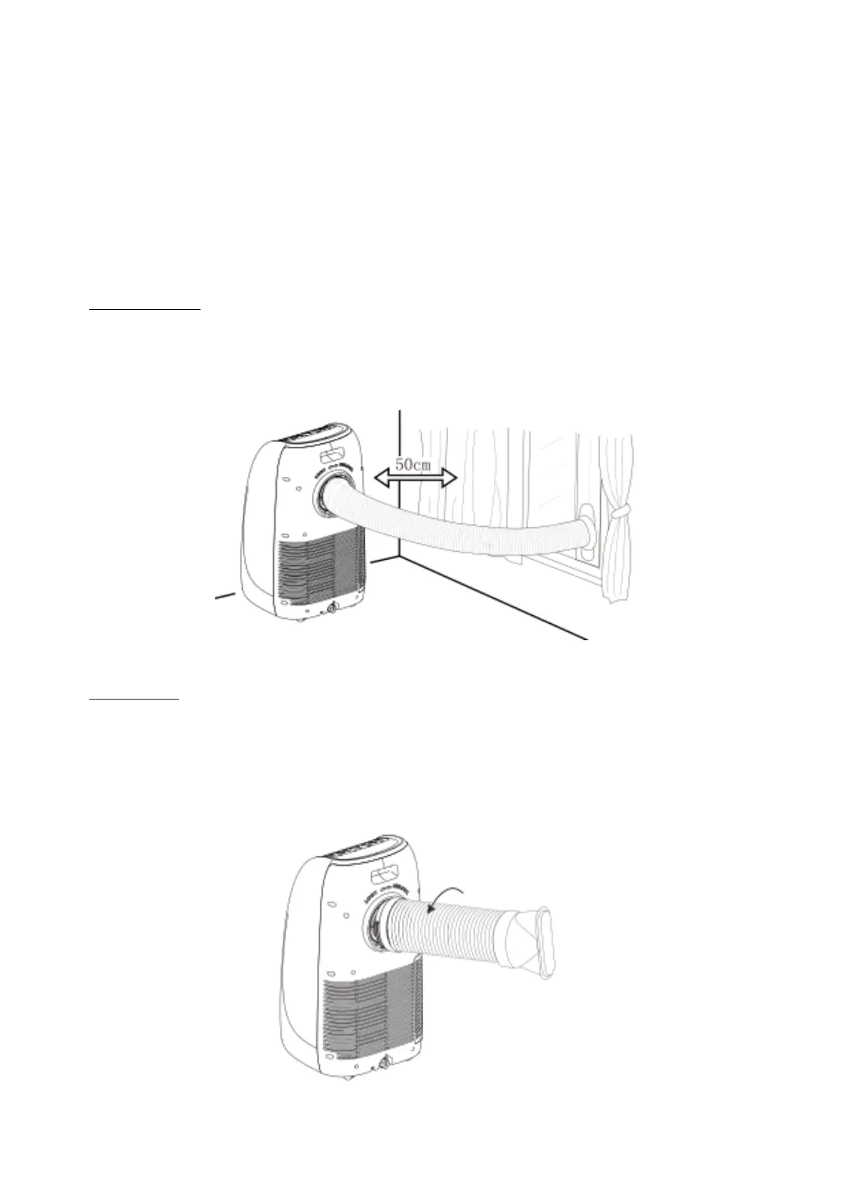 l Placez le climatiseur dans un endroit plan et sec, et tenez-le à au moins 50 cm