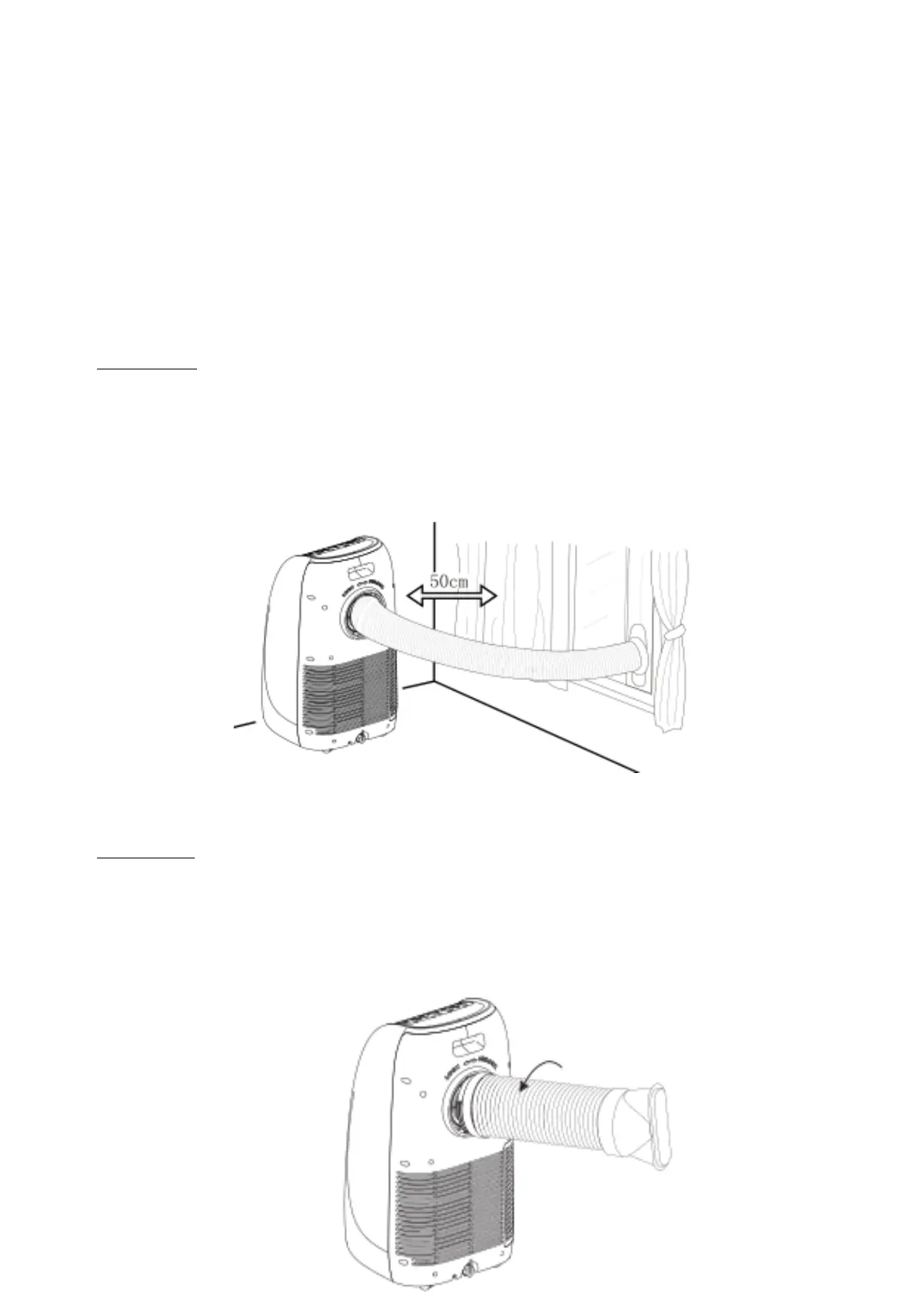 l Platzieren Sie die Klimaanlage auf einer ebenen Fläche und mindestens 50cm